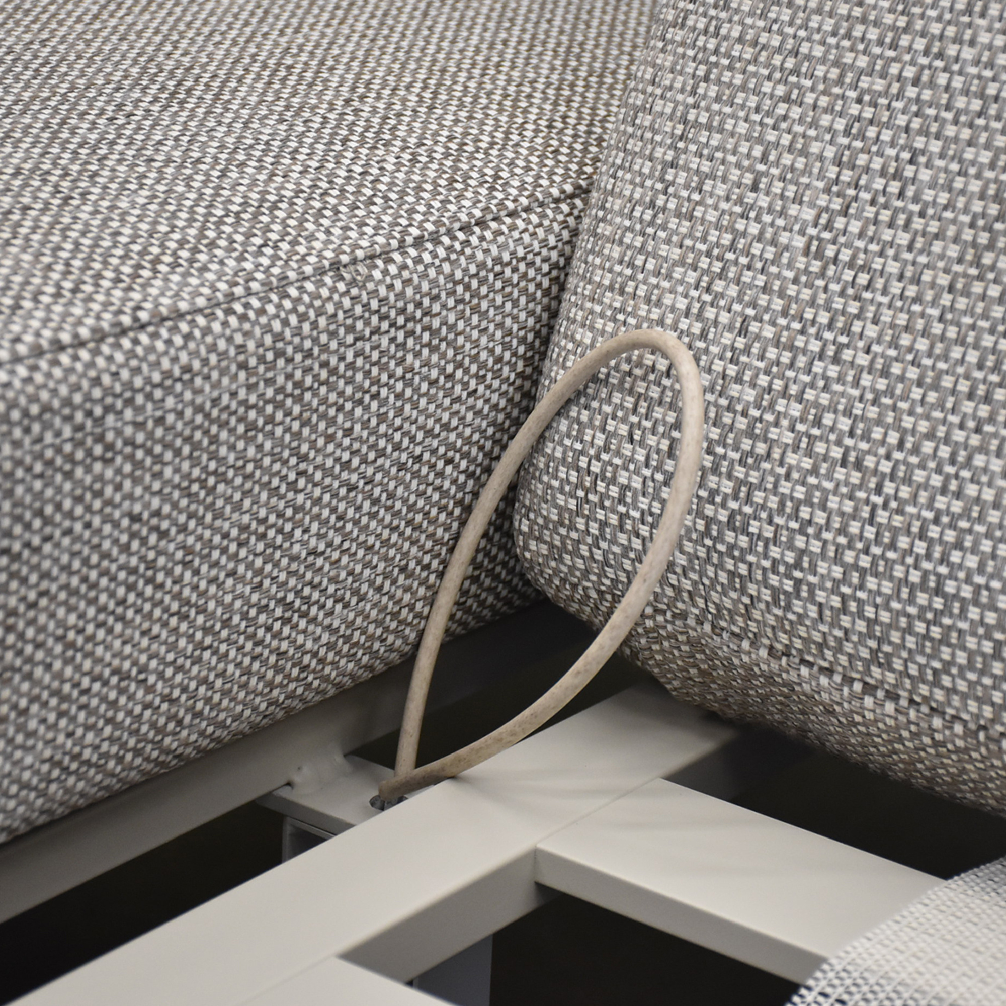 Het bijzondere aan de Barolo loungeset is dat alle rugleuningen verstelbaar zijn. Op de armleuningen zit een knop en als je die indrukt en met je rug tegen de leuning duwt, gaat de rugleuning traploos naar achteren. Dit komt doordat er een gasveer in het frame is verwerkt.