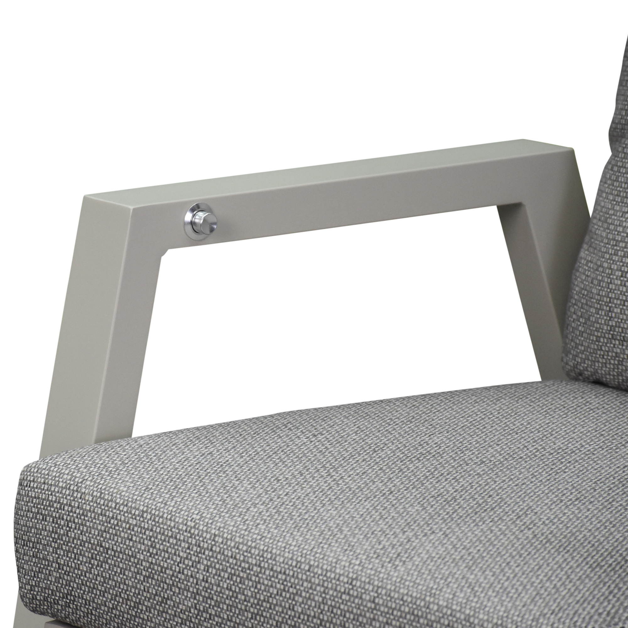 Het bijzondere aan de Barolo loungeset is dat alle rugleuningen verstelbaar zijn. Op de armleuningen zit een knop en als je die indrukt en met je rug tegen de leuning duwt, gaat de rugleuning traploos naar achteren. Dit komt doordat er een gasveer in het frame is verwerkt.