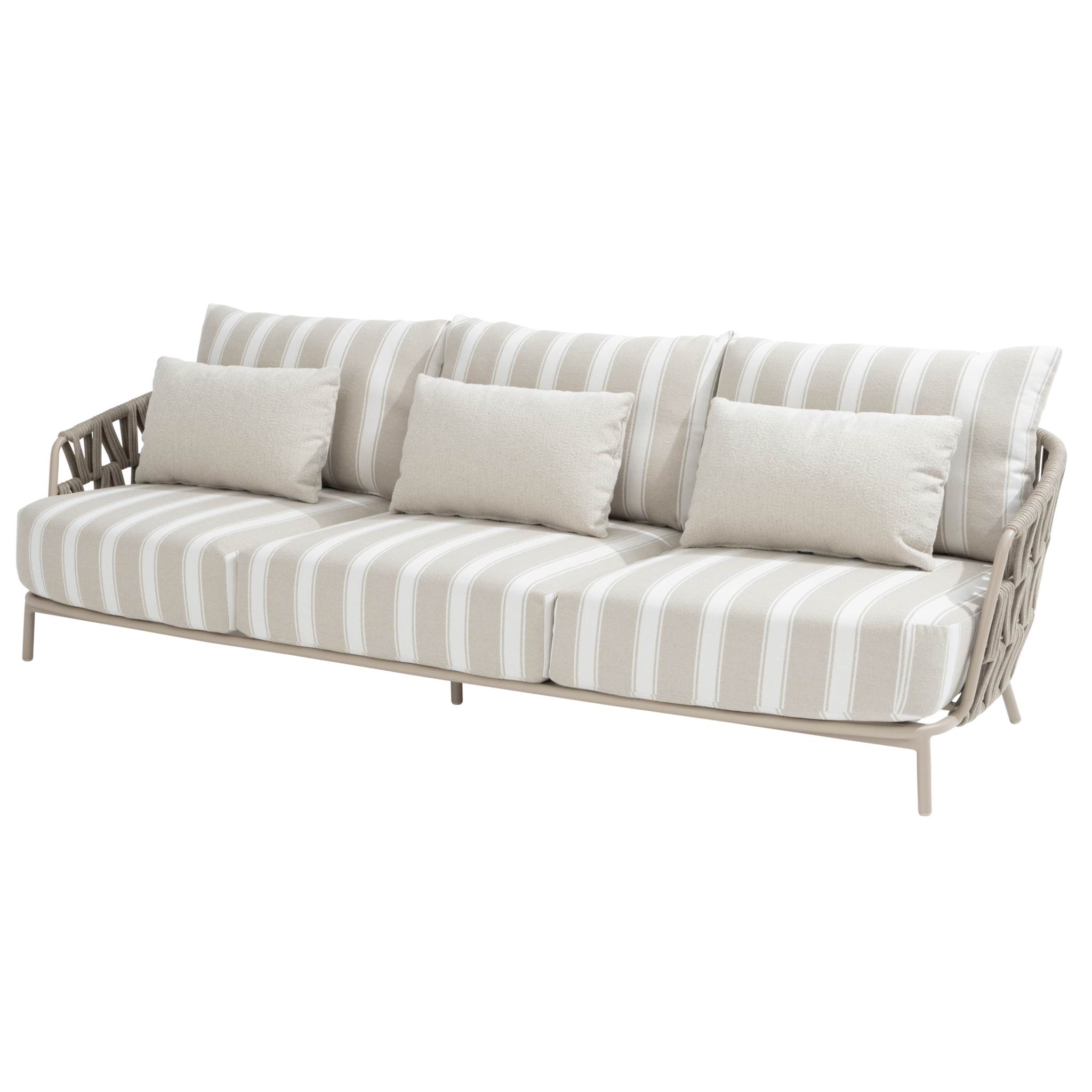 Voor extra comfort is de bank voorzien van royale All Weather buitenkussens met een luxe uitstraling. De kussens zijn gemaakt van een Olefin all weather buitenstof wat het kussen zeer goed water en vuilafstotend maakt.