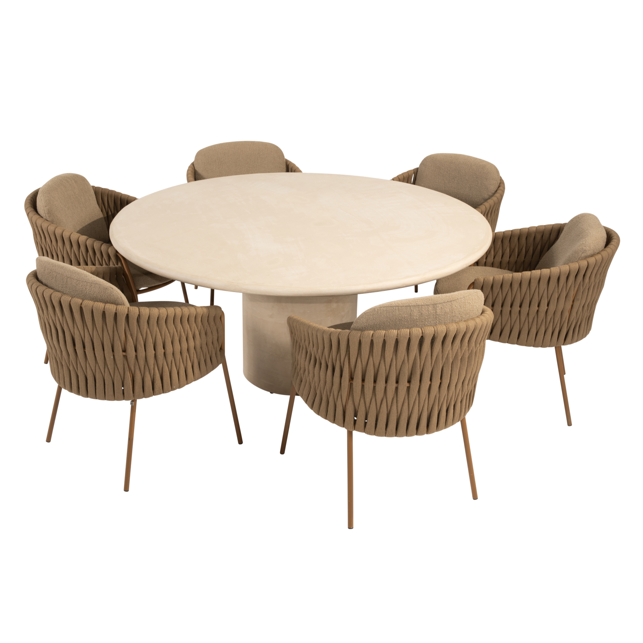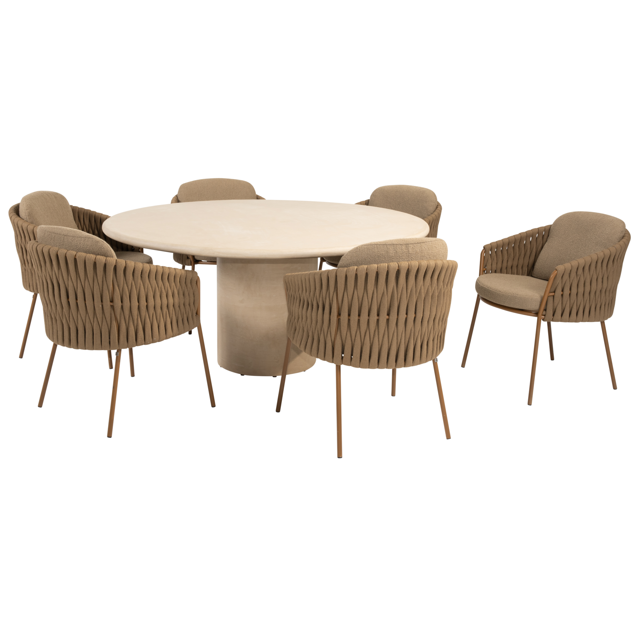 Hampton Molina dining tuinset 160xH75 cm rond 7 delig mortex amber 4 Seasons Outdoor