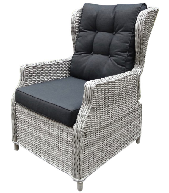 De kleur van het vlechtwerk is wit grijs. De kussens zijn donkergrijs.