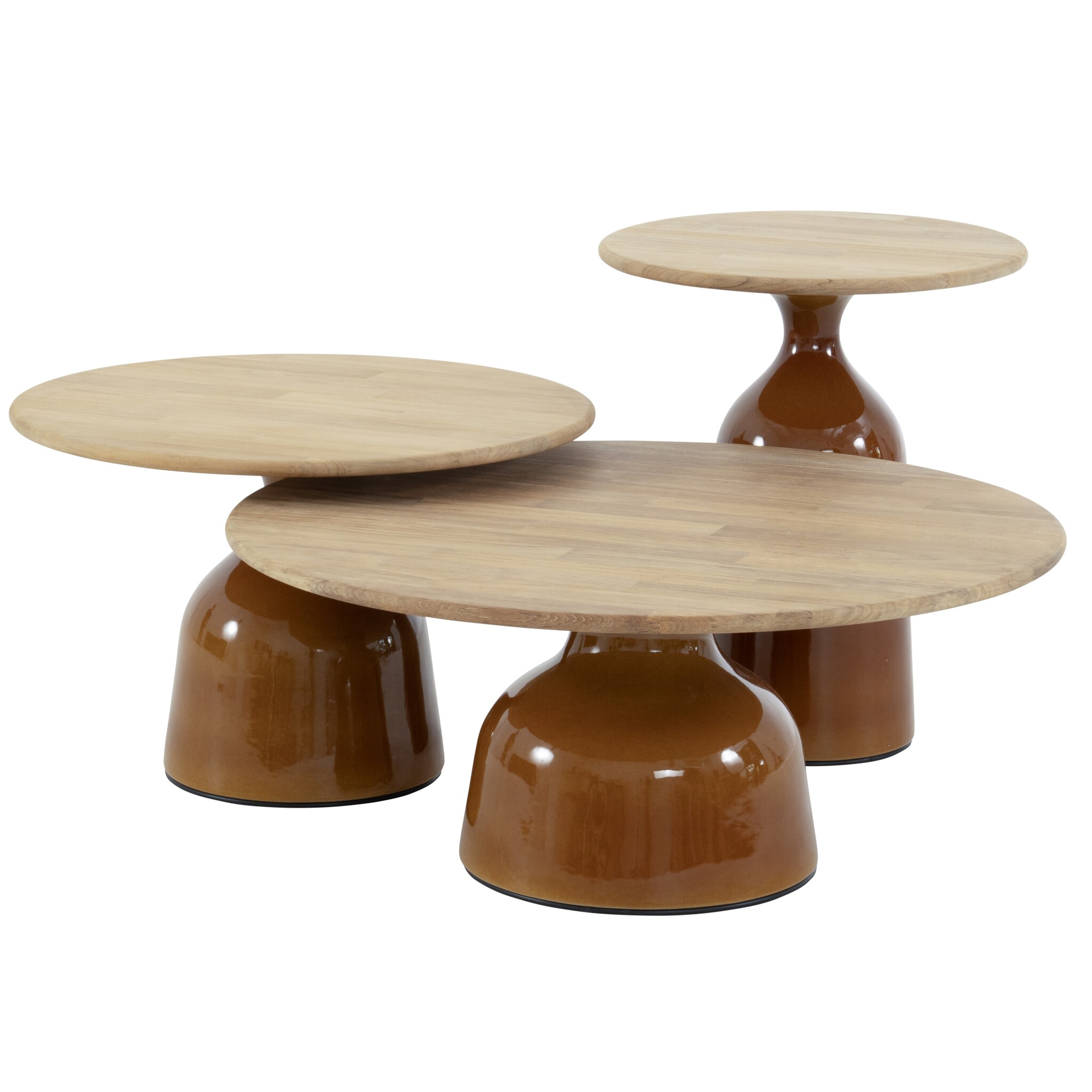 Het onderstel van de June tafel is een echte blikvanger. Het is gemaakt van hoogglans keramiek in een warme caramel kleur. De combinatie van het natuurlijke teak en het glanzende keramiek geeft de tafel een moderne, maar tijdloze uitstraling.
