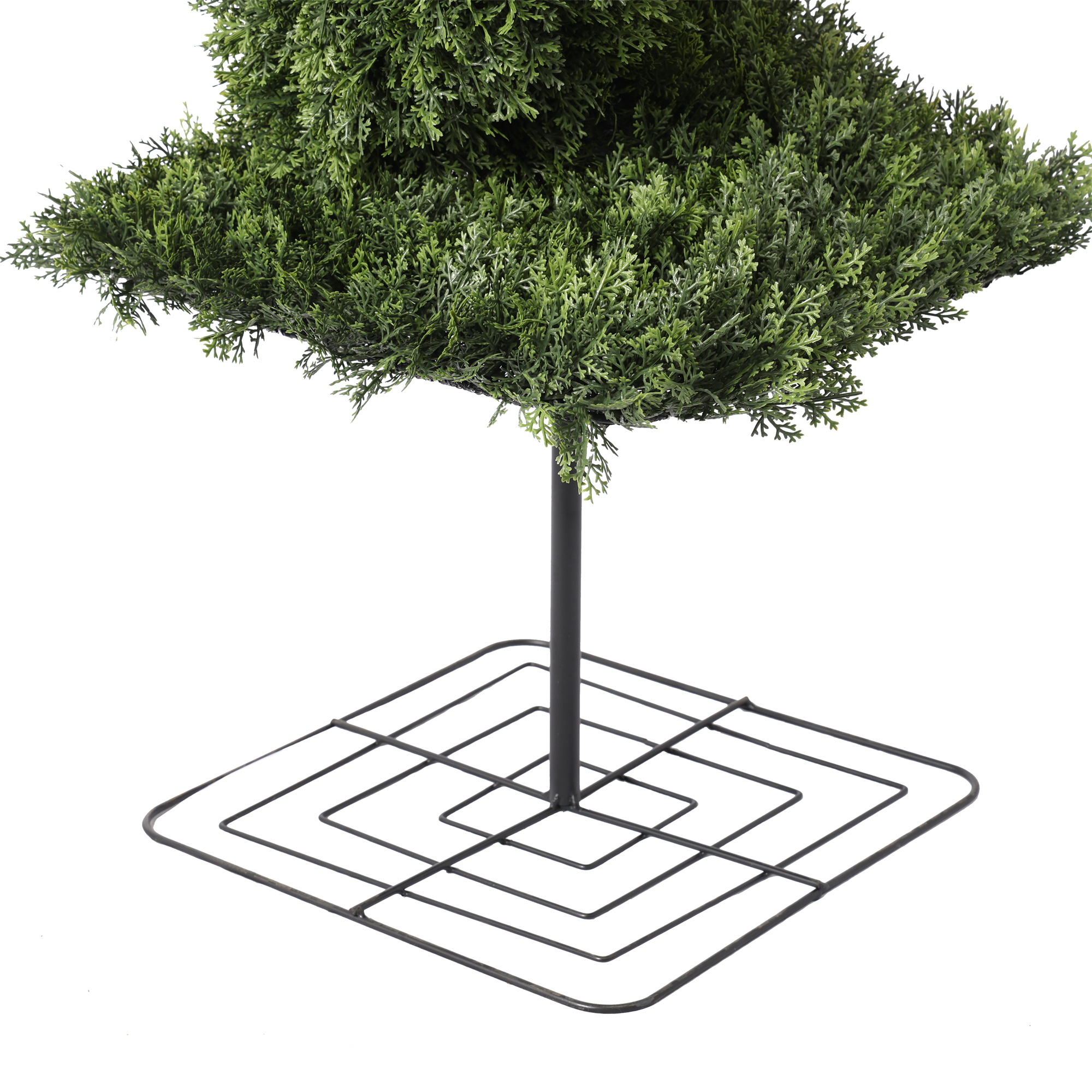De elegante spiraalvorm geeft een luxe uitstraling en past moeiteloos in zowel moderne als klassieke buitenruimtes. Dankzij de natuurgetrouwe naalden en volle structuur is deze kunstconifeer nauwelijks van echt te onderscheiden. Zelfs van dichtbij oogt hij fris, strak en verzorgd.