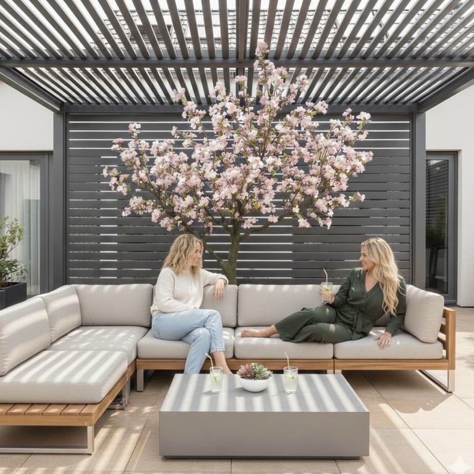 Deze kunst kersenbloesemboom is bedoeld voor gebruik binnenshuis, maar komt ook prachtig tot zijn recht buiten onder een afdak of overkapping. Geplaatst naast een loungeset of tuinset creëert hij een sfeervol buitengevoel met een elegante en rustgevende ambiance.
