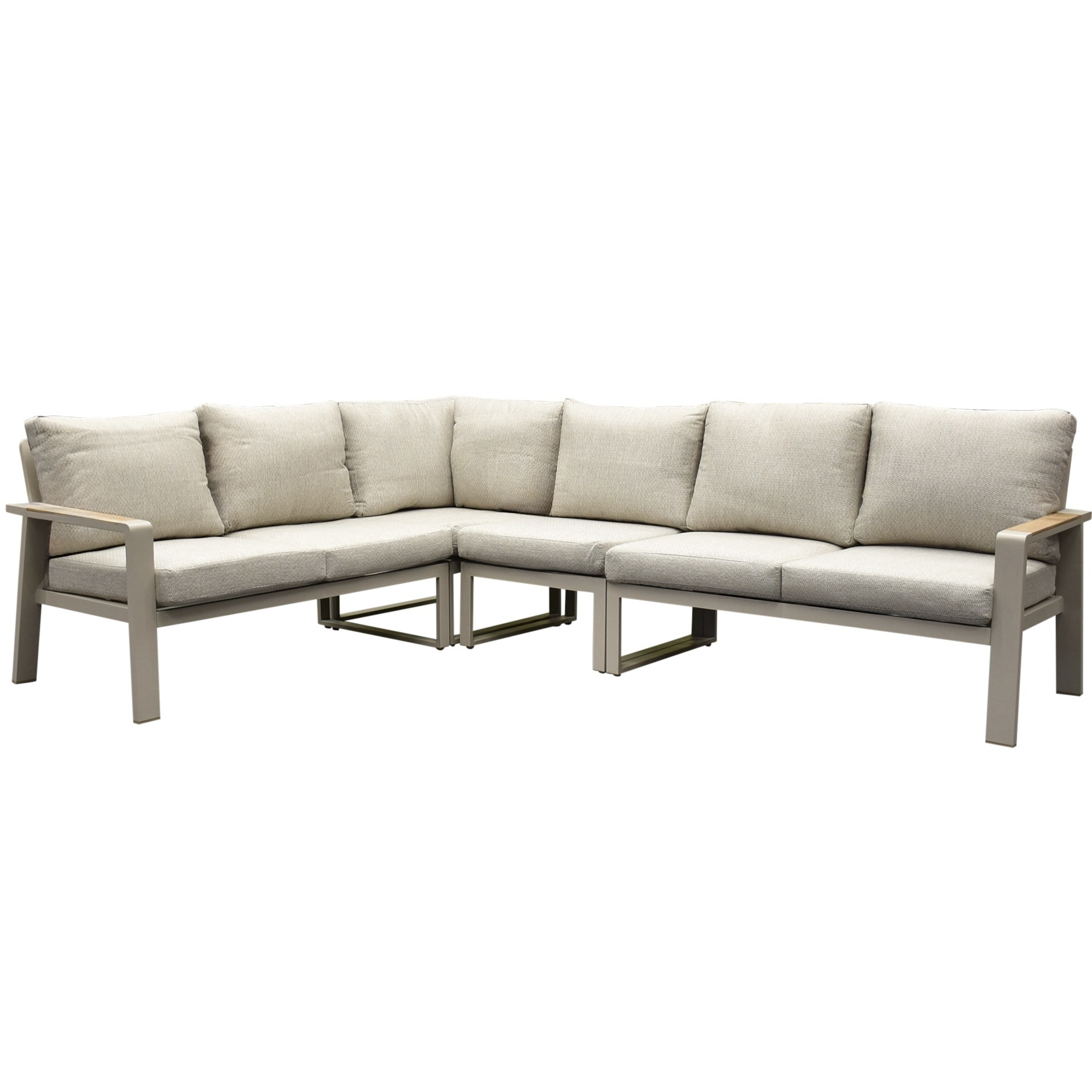 Lola dining hoek loungeset 5 delig verstelbare tafel latte zand is van het merk AVH-Collectie. De loungeset bestaat uit een open bank linkerarm, open bank rechterarm, hoekelement, middenelement en een Saigon in hoogte verstelbare tafel.