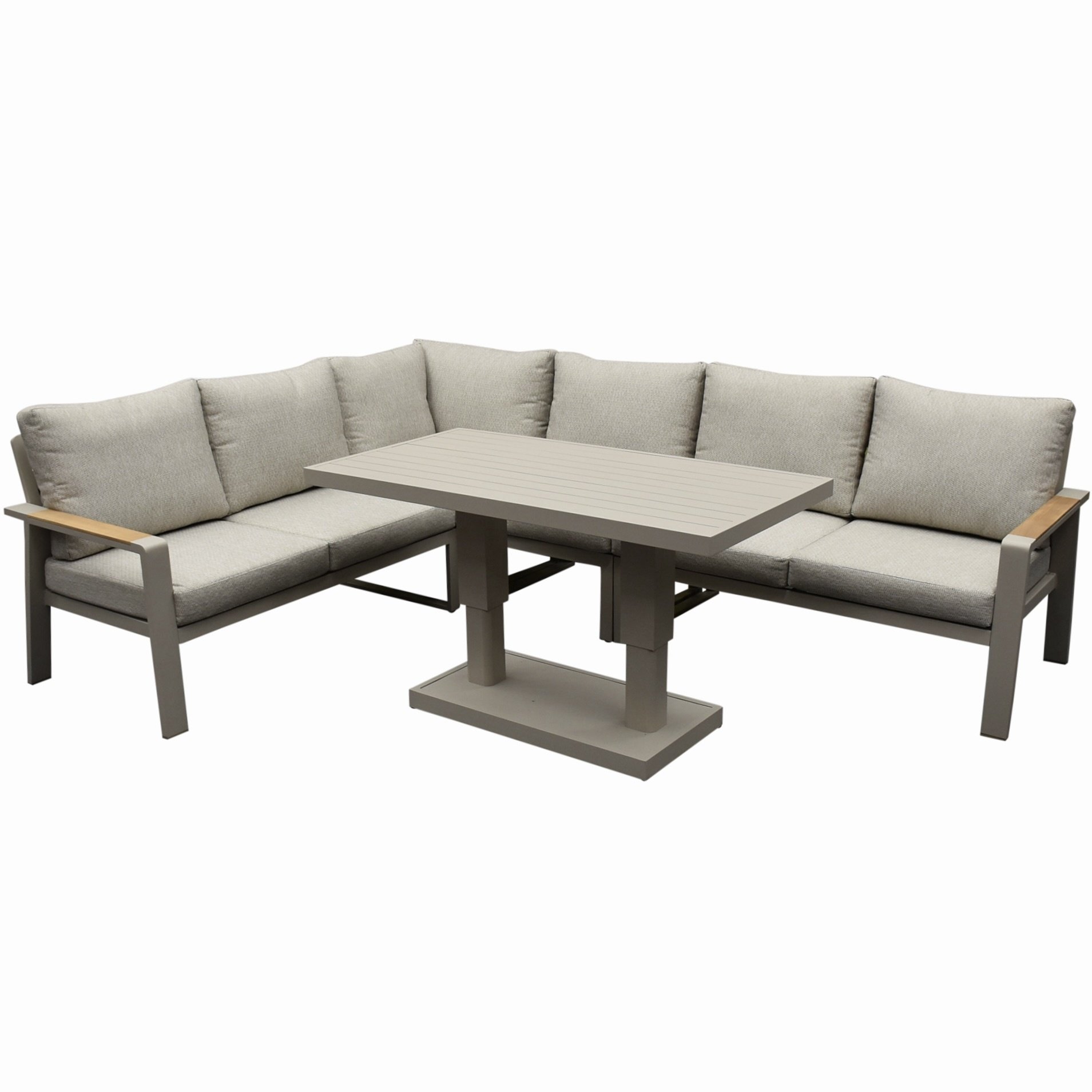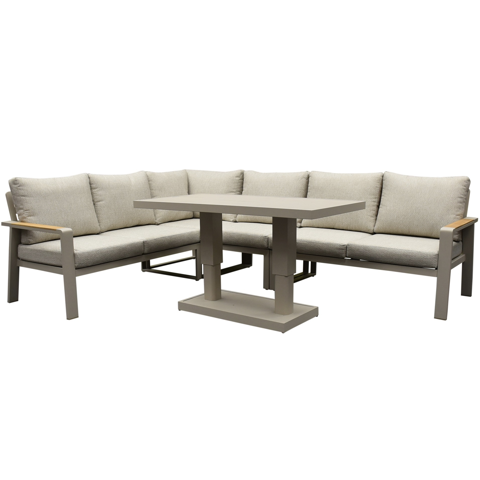 Lola dining hoek loungeset 5 delig verstelbare tafel latte zand