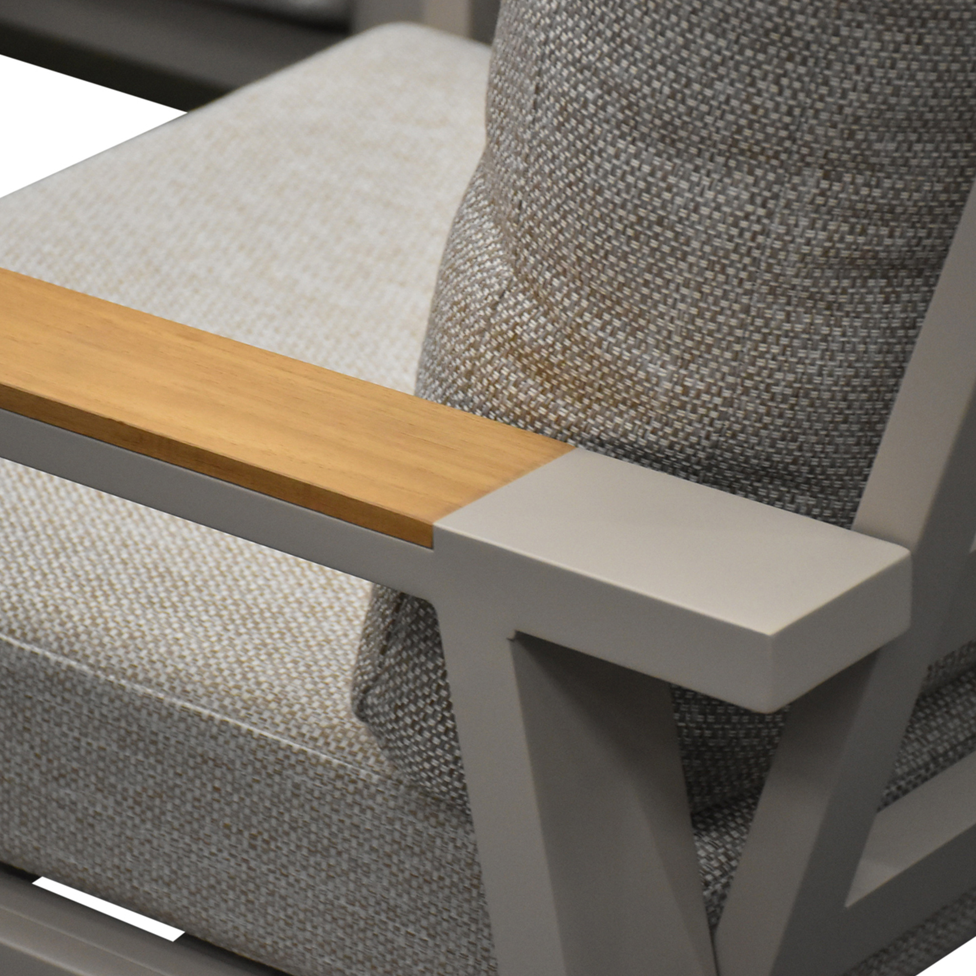 De Lola set is strak vormgegeven en afgewerkt met elegante teak inleg in de armleuningen. Het onderstel van gepoedercoat aluminium maakt de set sterk, licht én volledig weerbestendig. Dat betekent: zonder zorgen buiten laten staan, seizoen na seizoen. Het teak zal op natuurlijke wijze prachtig vergrijzen – een look waar veel liefhebbers juist voor kiezen. Liever de originele kleur behouden? Met een wood protector houd je het teak eenvoudig in topconditie.
