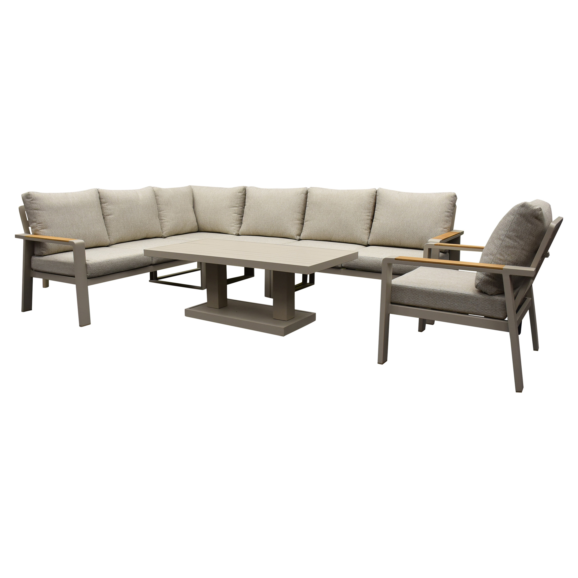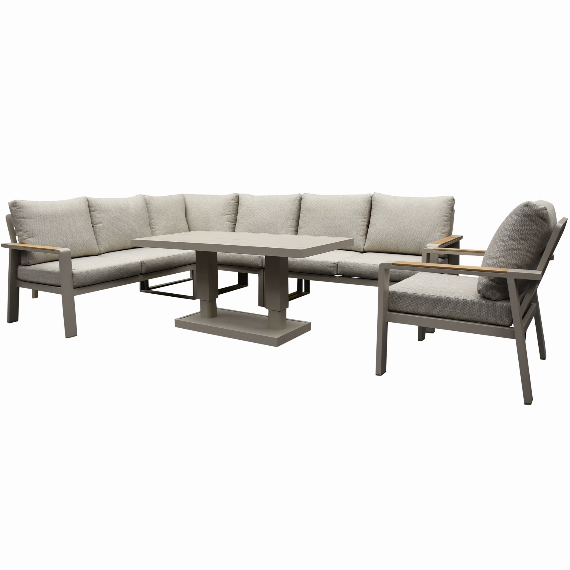 Lola dining hoek loungeset 6 delig verstelbare tafel latte zand