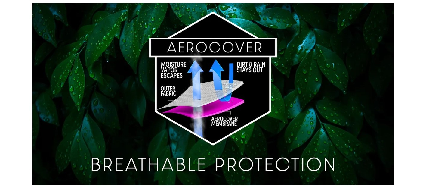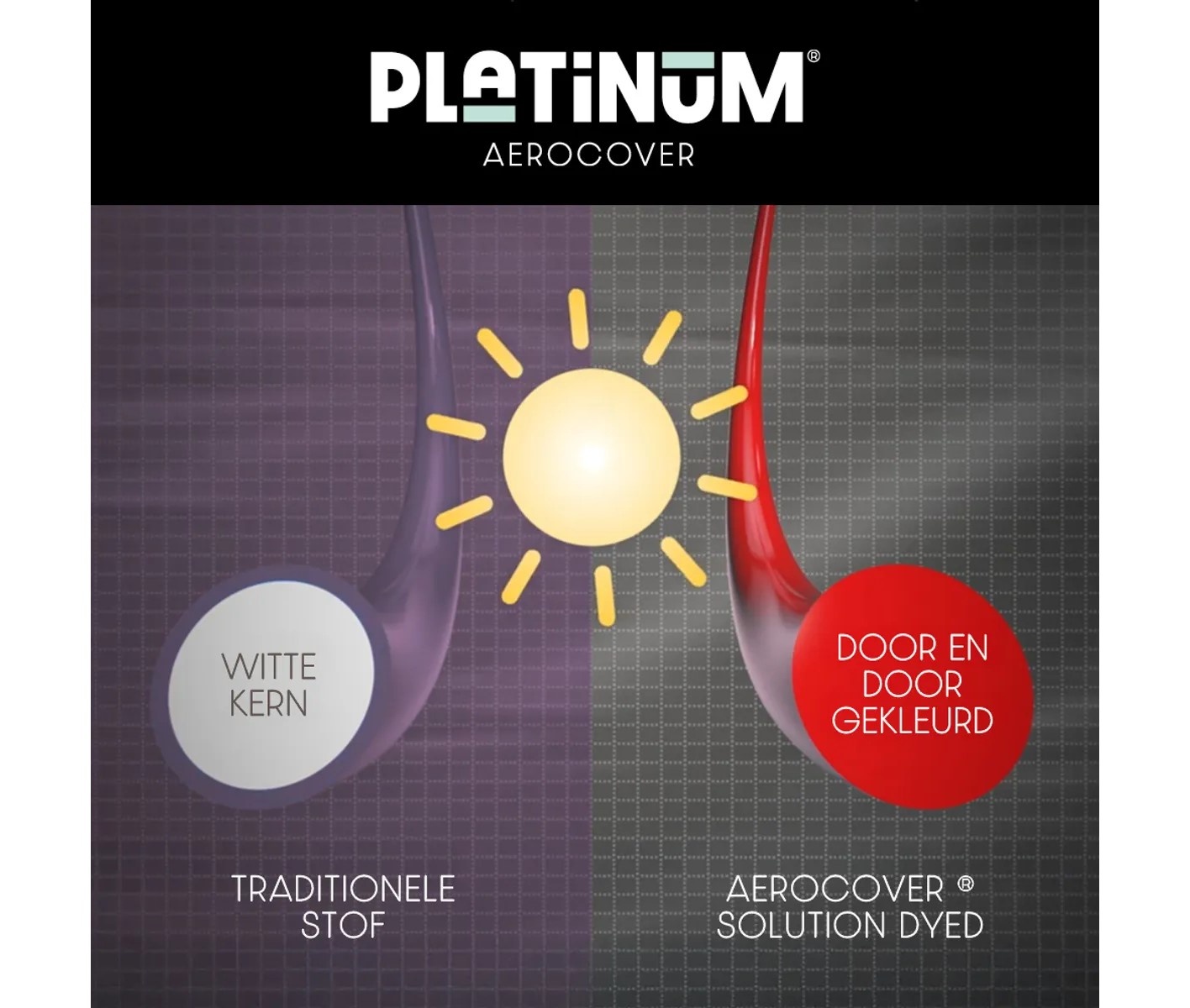 Aerocovers zijn hoezen die ademend zijn. Ze laten condensvorming door, maar zijn wel waterdicht. Hierdoor zal er geen schimmelvorming ontstaan. De stof zal niet snel verkleuren door de zon omdat de vezels door en door gekleurd zijn.