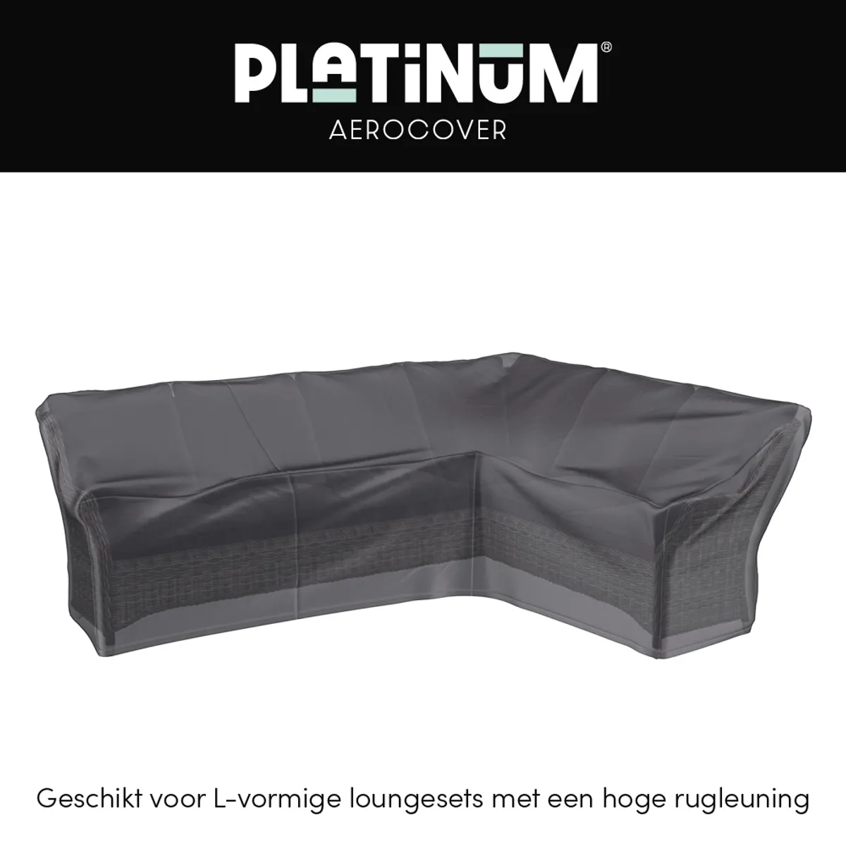 De loungesethoes voor hoeksets is van het merk van Aerocover. De ademende loungesethoes voor loungeset rechts is in een L-vorm en heeft een afmeting van 305x255x100xH65/90 cm. Wij geven 2 jaar garantie op de hoes.