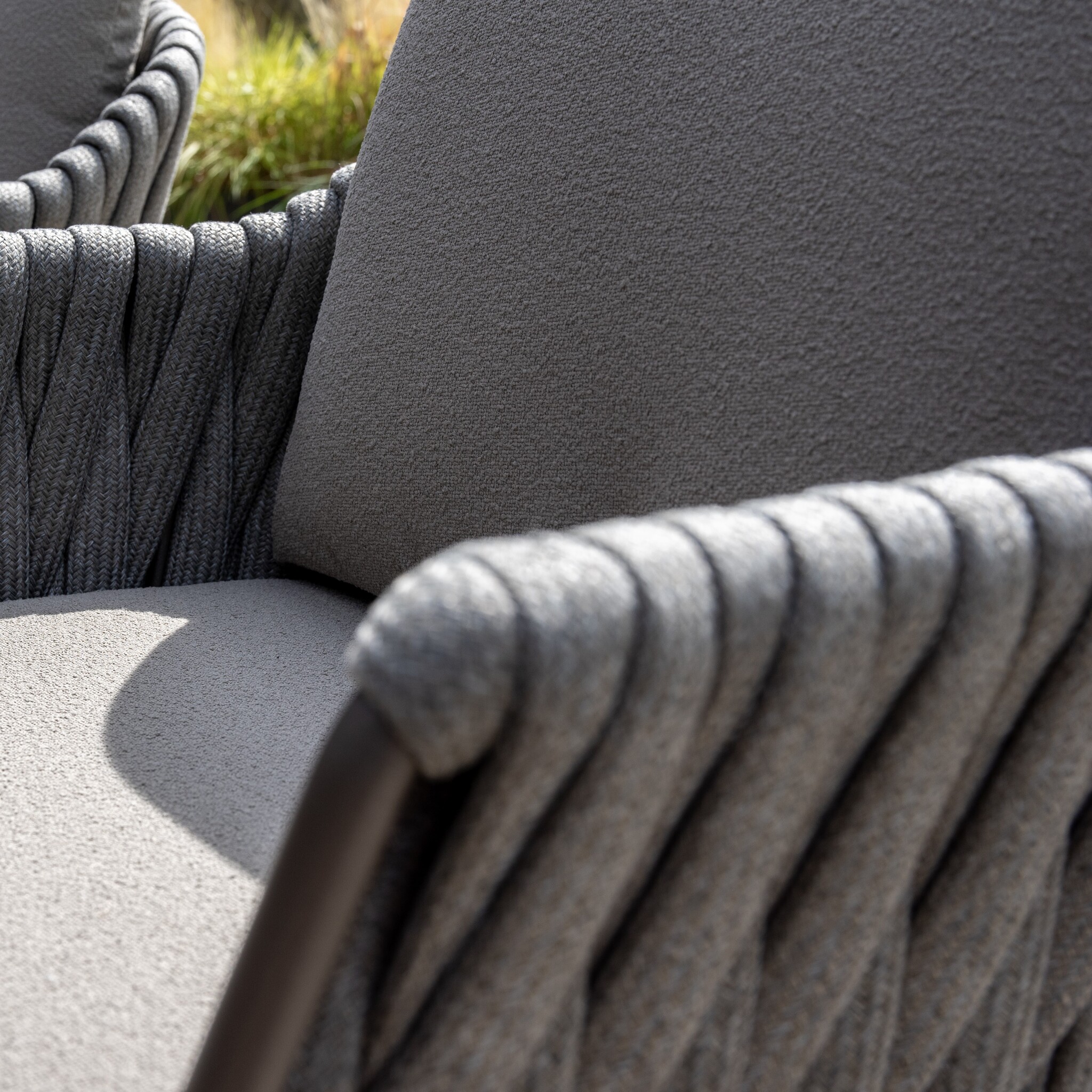 De Cannes dining stoel heeft een verfijnd en eigentijds ontwerp dat moeiteloos aansluit bij uiteenlopende tuin- en terrasstijlen. Het frame is gemaakt van gepoedercoat aluminium in de kleur terre, een warme en moderne tint die rust en elegantie uitstraalt. Rondom de rugleuning en armleuningen is de stoel afgewerkt met een prachtig gevlochten rope in een stijlvolle grijze kleur. Deze combinatie van kleuren en materialen geeft de Cannes stoel een uitnodigende, natuurlijke uitstraling die perfect past in elke buitenomgeving.