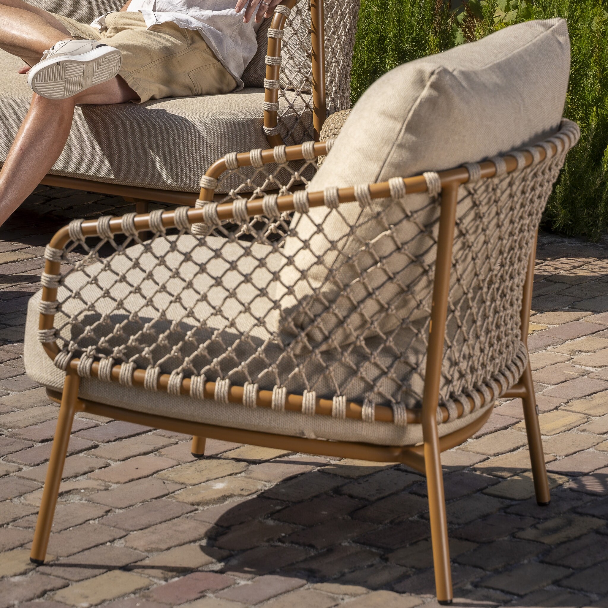 De Martinique lounge tuinstoel van 4 Seasons Outdoor straalt luxe en comfort uit en is ontworpen voor ontspannen momenten in de tuin of op het terras. Het stevige frame is gemaakt van gepoedercoat aluminium in de warme kleur amber dat maakt de stoel licht van gewicht, sterk en bestand tegen alle weersomstandigheden.