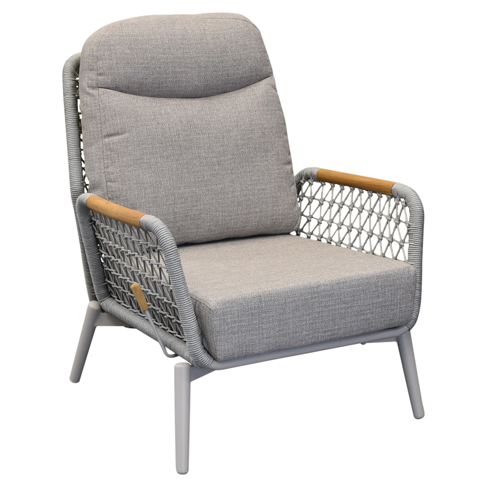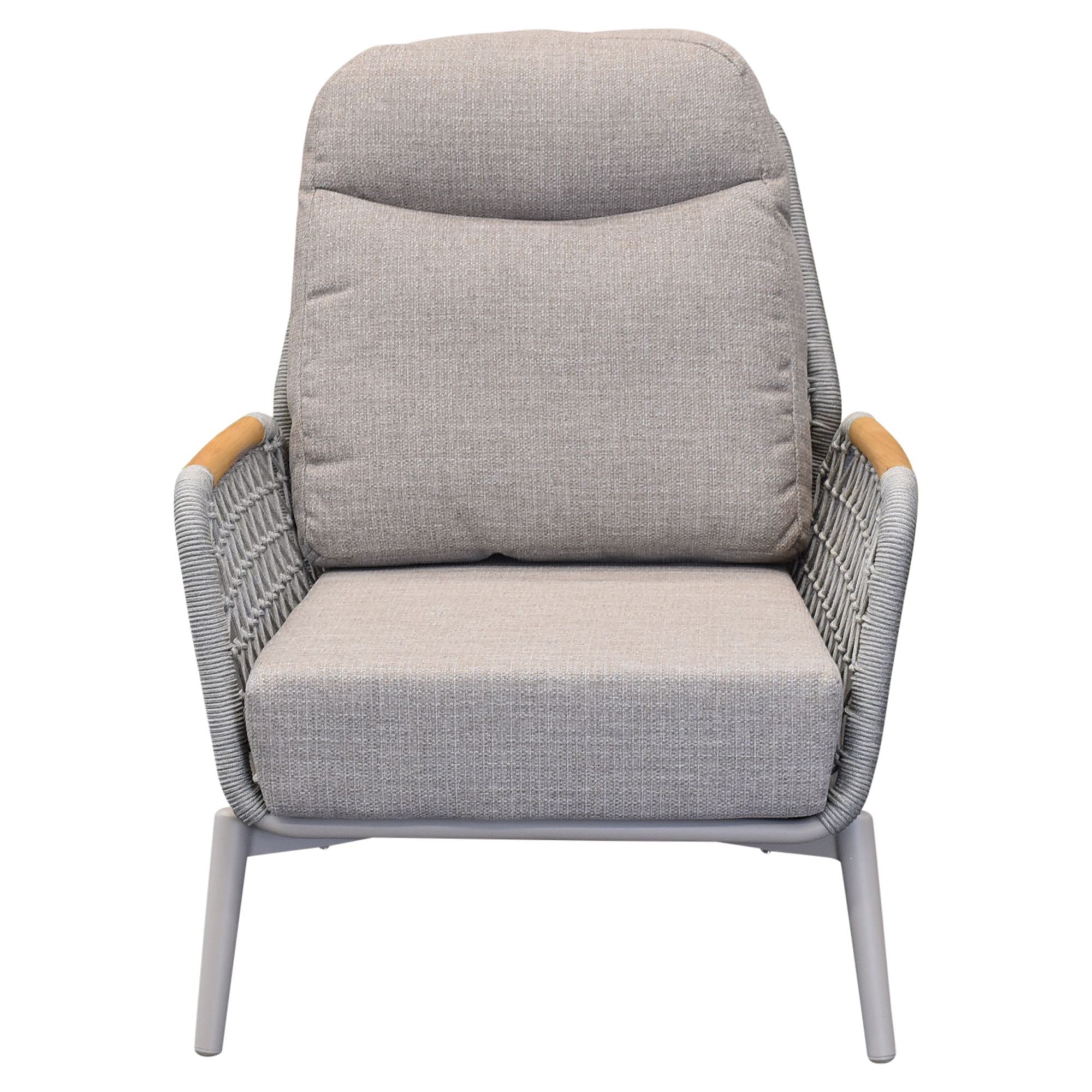 De teak houten armleuningen geven de stoel een luxe, warme touch en vormen een mooi contrast met het moderne rope en aluminium. Dankzij de organische vormen is de Monza loungestoel helemaal van nu en past hij perfect in zowel strakke als natuurlijke tuininrichtingen.