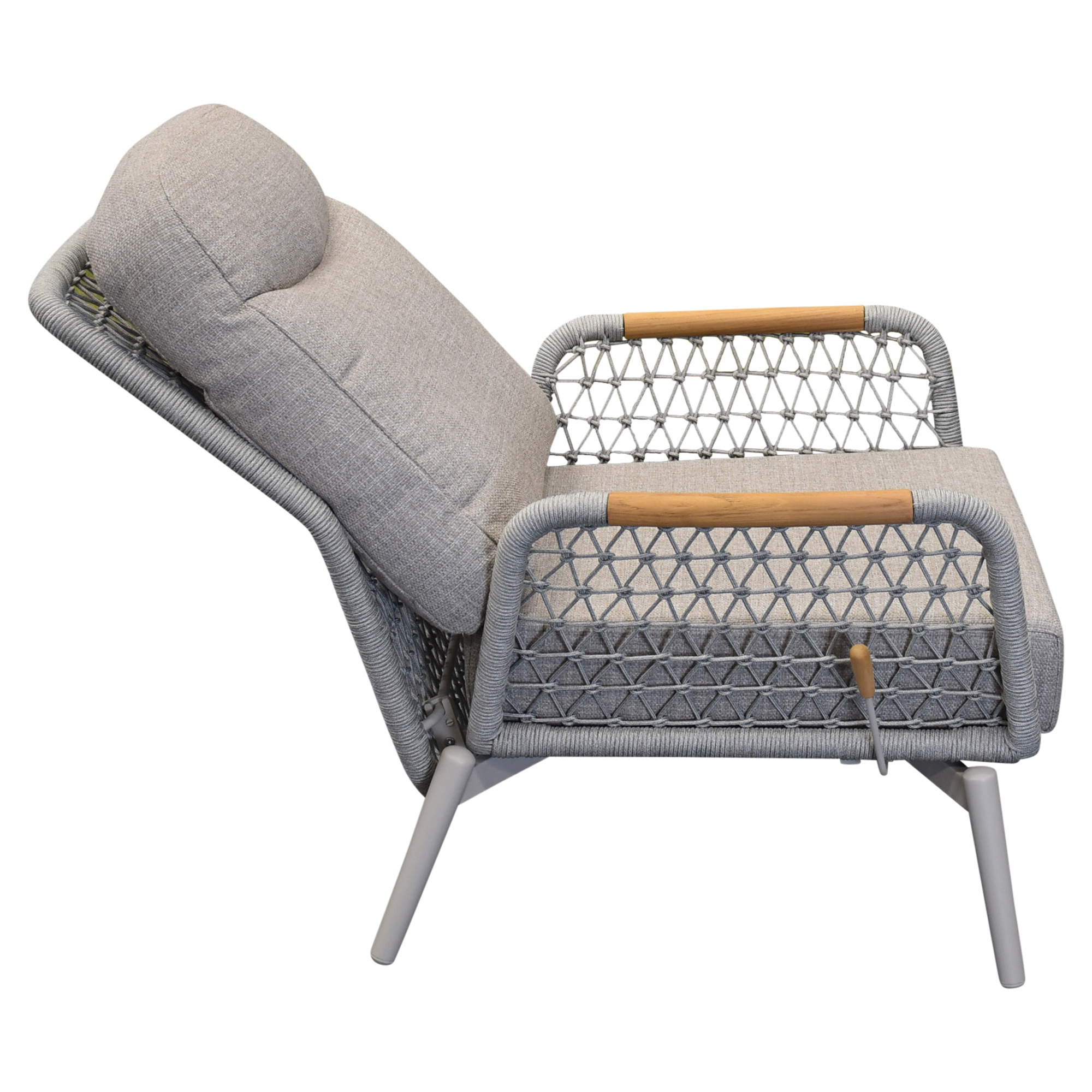 Wat deze loungestoel extra bijzonder maakt, is dat hij verstelbaar is. Je kunt eenvoudig achterover leunen en zo jouw ideale zit- of ligpositie instellen – perfect voor optimaal relaxen. De stoel is voorzien van dikke zit- en rugkussens, die niet alleen zorgen voor extra comfort, maar ook water- en vuilafstotend zijn – ideaal voor buitengebruik.
