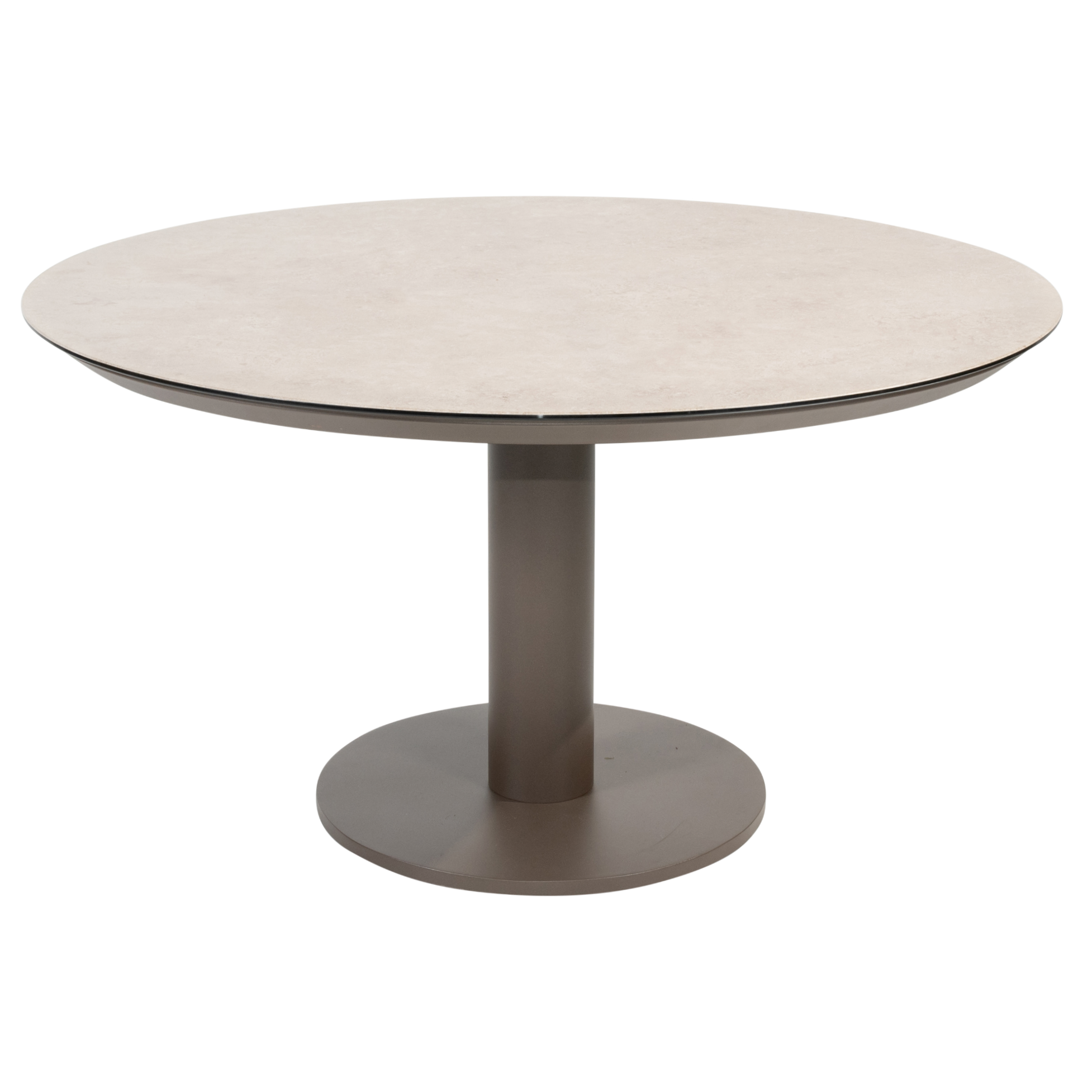 Het ronde tafelblad van printed ceramic zorgt voor een luxe en duurzame afwerking. Dit materiaal is krasbestendig, kleurvast en eenvoudig te reinigen, ideaal voor dagelijks gebruik in de buitenlucht. De subtiele print en het gladde oppervlak geven de tafel een chique, uitnodigende look die perfect aansluit bij het stijlvolle design van Taste 4SO.