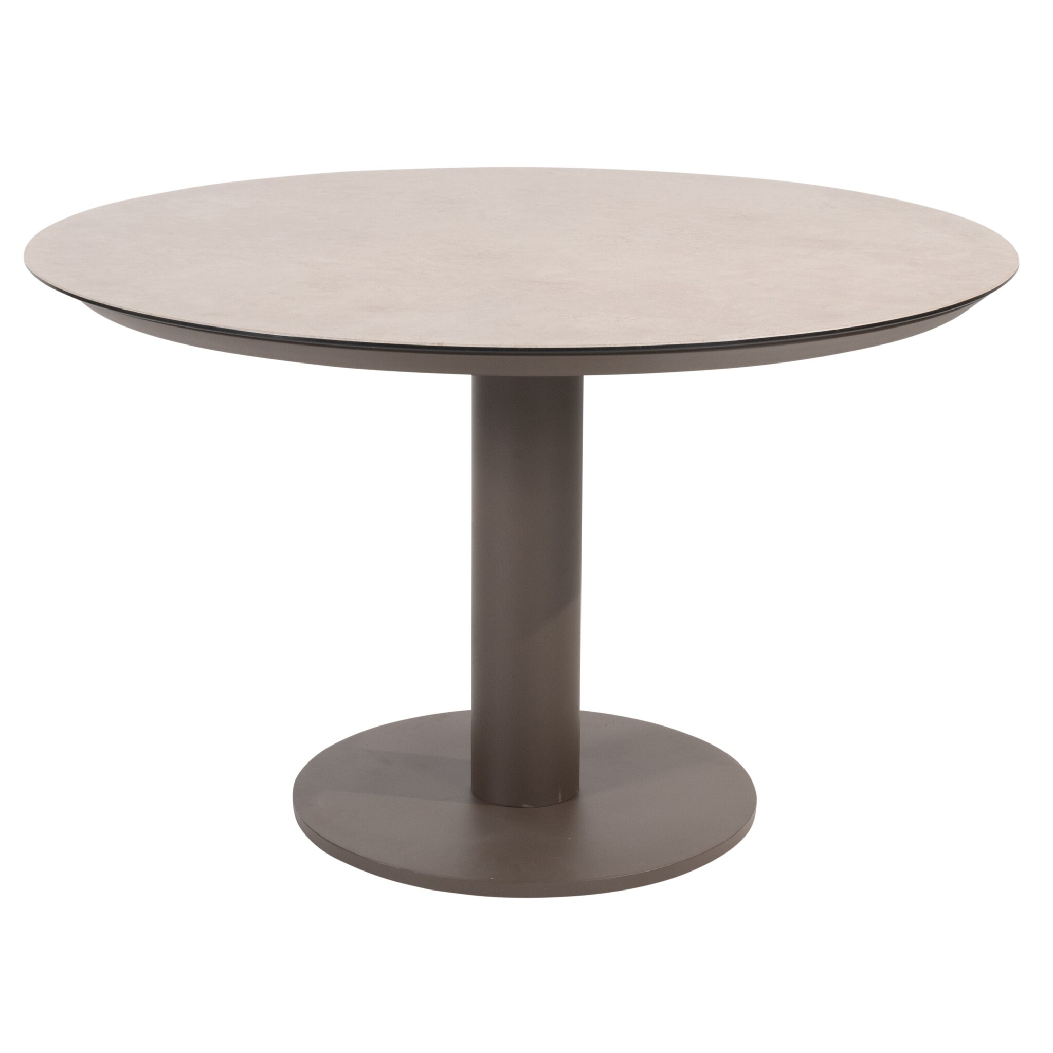 Het ronde tafelblad van printed ceramic geeft de tafel een luxueuze uitstraling. Dit keramische blad is krasbestendig, kleurvast en eenvoudig schoon te maken dus ideaal voor buitengebruik. De subtiele print in natuurlijke tinten vormt een perfect contrast met het zachte terre frame, wat zorgt voor een verfijnde en moderne uitstraling.