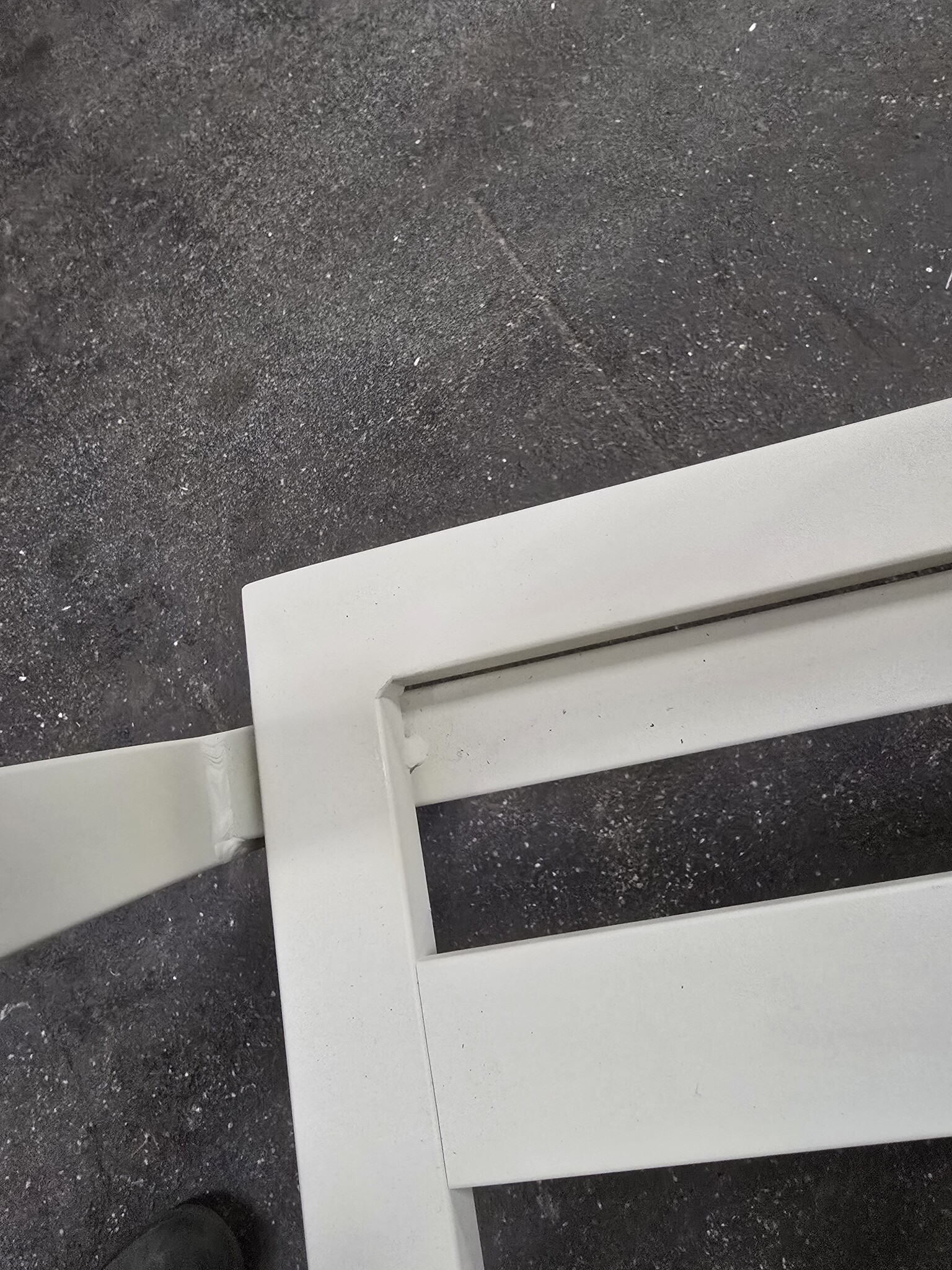 De stoelen hebben lichte beschadigingen aan het frame, bestaande uit enkele kleine gebruikssporen. Daarnaast is aan de voorzijde van de zitting een lichte verkleuring van het frame zichtbaar. De oorzaak hiervan is niet bekend, maar het doet geen afbreuk aan het zitcomfort of de functionaliteit.