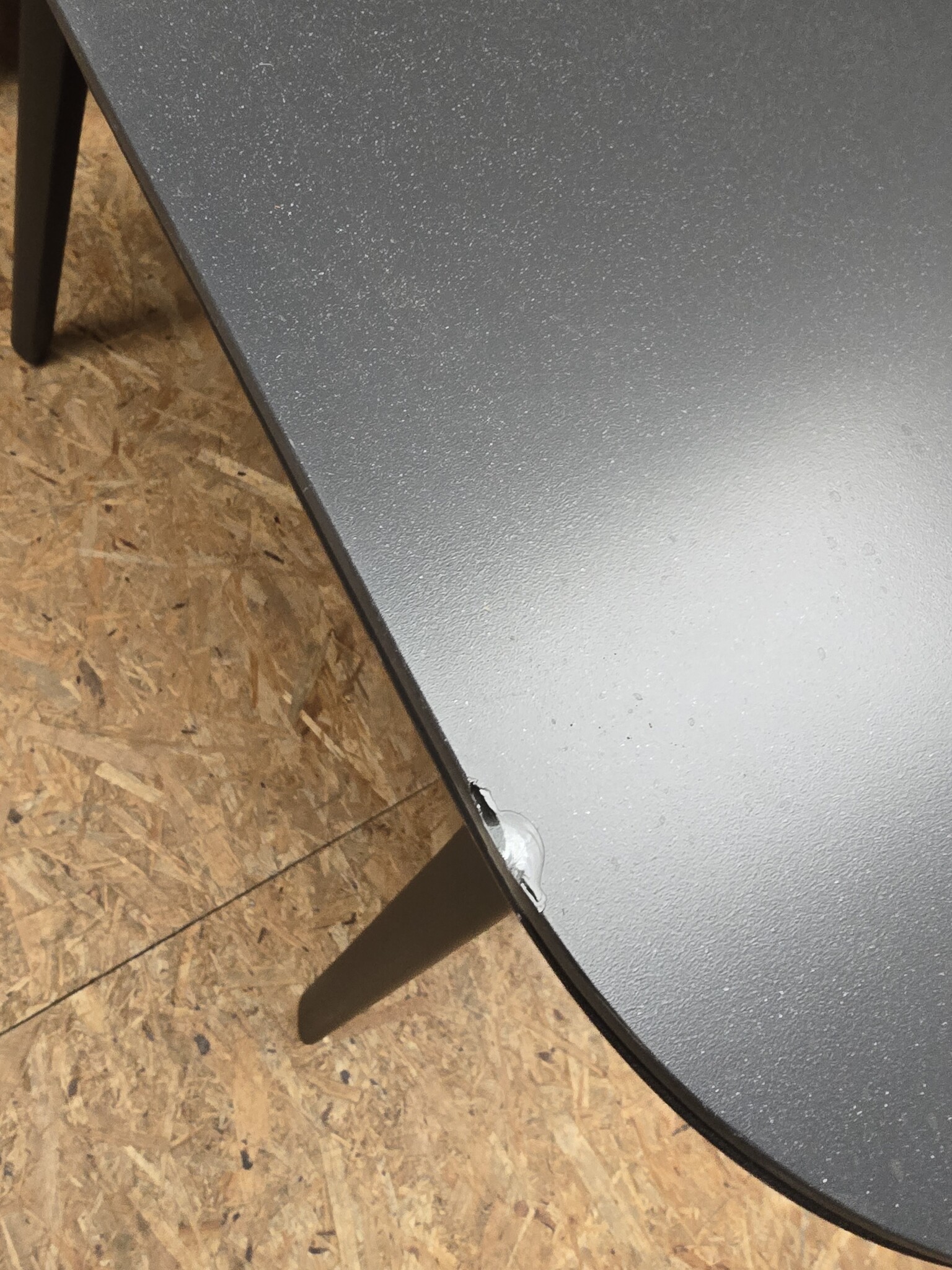Let op: dit betreft het laatste exemplaar. De set heeft veel lakschade, waardoor wij deze tegen deze scherpe prijs kunnen aanbieden. Daarnaast zit er een klein putje in de tafelkant (zie foto’s). De pootjes zijn voor het vervoer gedemonteerd en de set staat ingepakt in ons magazijn. Op dit exemplaar verlenen wij geen garantie en retourneren is niet mogelijk.