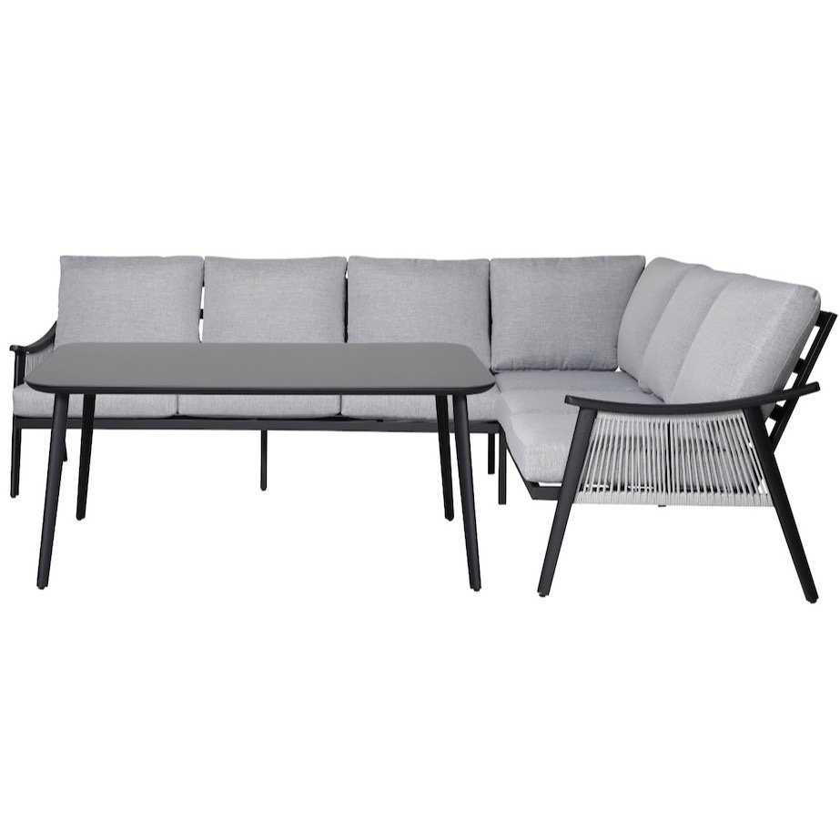 De Capetown loungeset is nieuw in de collectie. De Capetown loungeset is gemaakt van gepoedercoat aluminium in de kleur antraciet. Hij is afgewerkt met 8mm textileen rope dat altijd buiten kan blijven. Dit geeft de set een warme uitstraling.