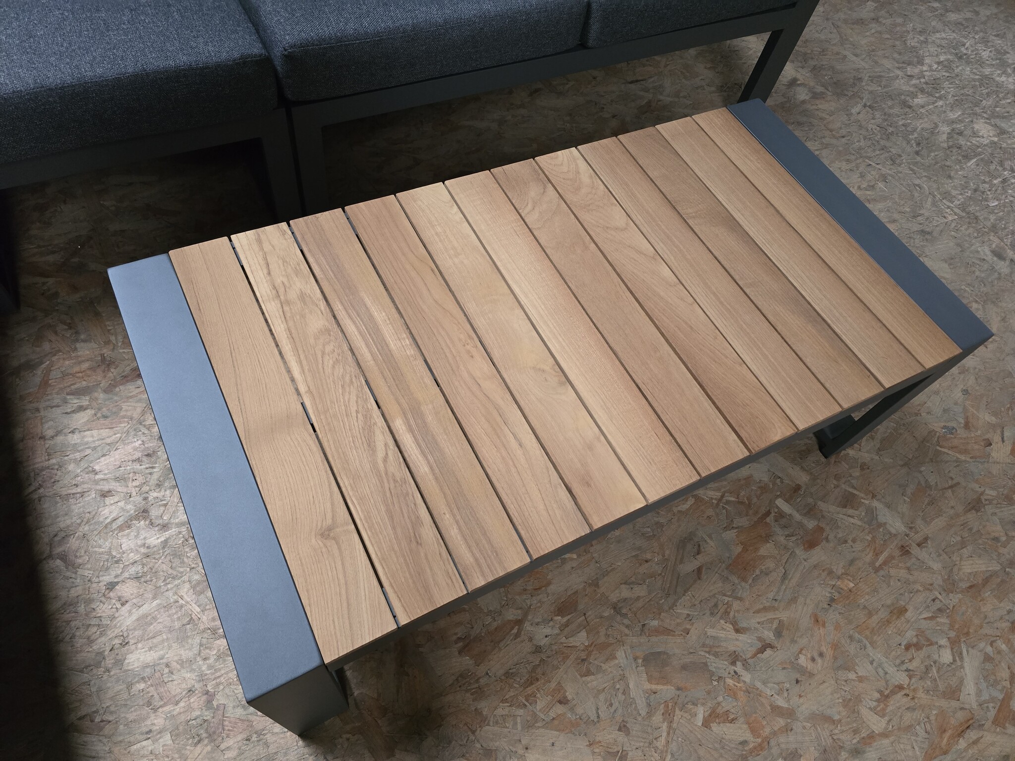 - 1 x lounge tuintafel antraciet aluminium met een teak blad (L116,5xB60XH84 cm)