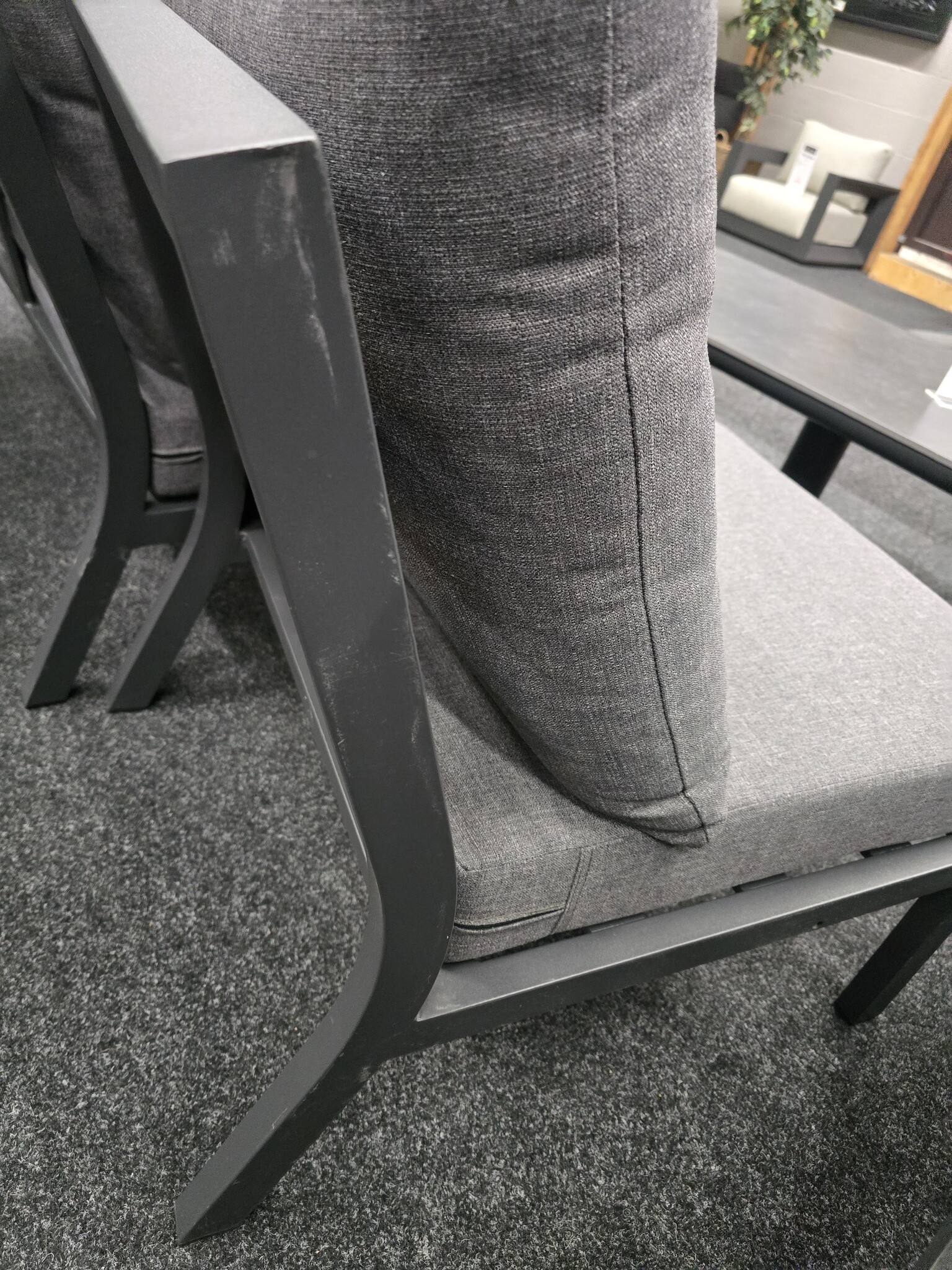 Let op! Dit betreft een showroommodel zonder garantie. De set heeft flinke schade op het aluminium frame. De set staat in onze showroom in Numansdorp.