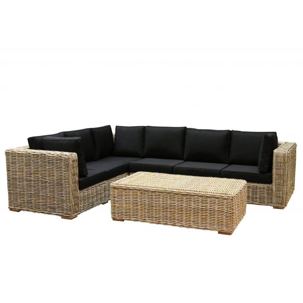 De Nissah hoek loungeset is een loungeset gemaakt van natuurlijk rotan. Door het gebruik van volledig ronde draden oogt de Nissah set erg robuust. Het frame is gemaakt van hardhout.