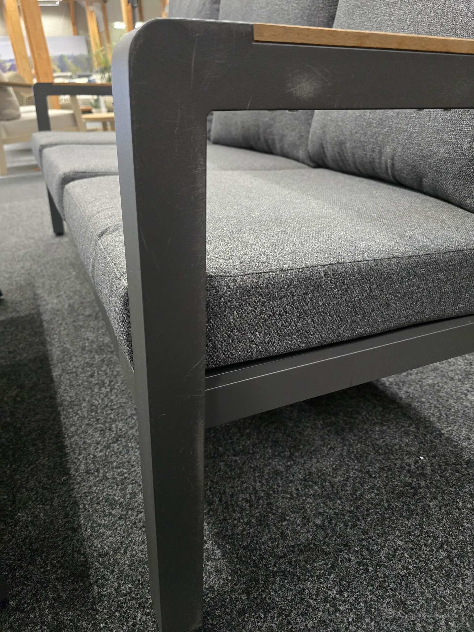 - 1 x 3-zitsbank antraciet aluminium met teak armleggers (L192xB93XH83 cm)