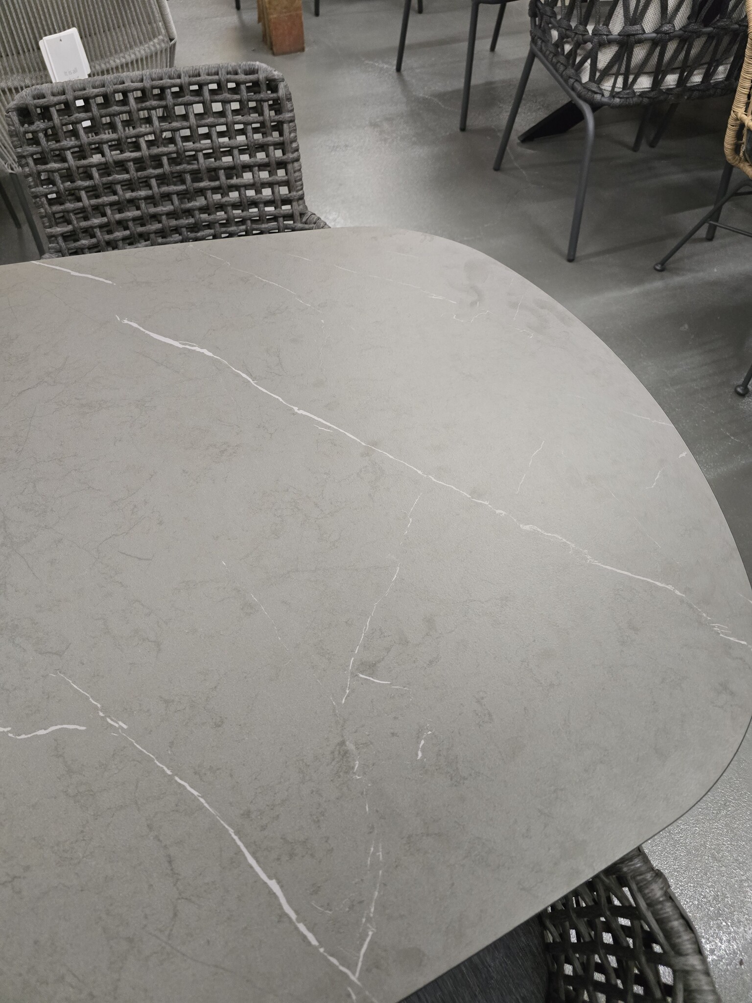 De San Francisco tafel is van het merk AVH-Collectie. De tafel heeft een aluminium gepoedercoat onderstel in de kleur antraciet en is uitgevoerd met een antraciet keramische ovale plaat. Let op! Dit betreft een beschadigd showroommodel.