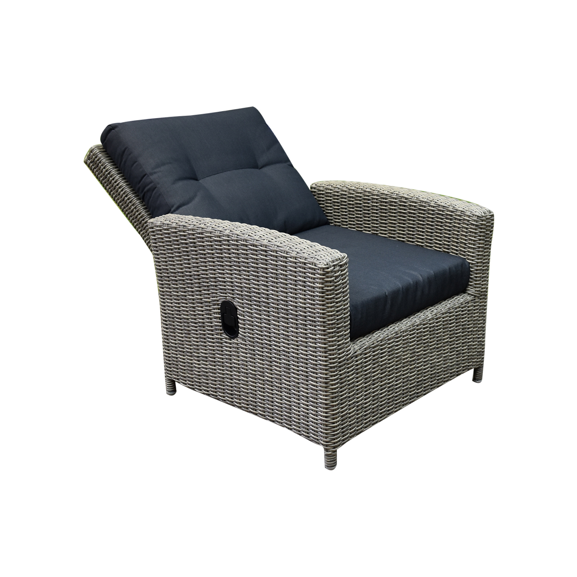 De loungeset is gemaakt van kunststof vlechtwerk met een sterk gepoedercoat frame.