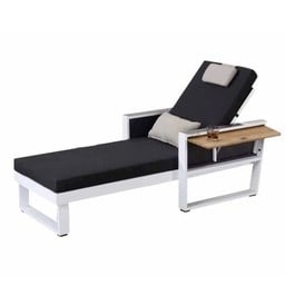 Het York ligbed is van het merk High Gold. High Gold staat bekend om zijn hedendaagse design en weet altijd hele moderne en strakke meubelen te produceren. Daarnaast staat het merk ook bekend om haar hoge kwaliteit. Het ligbed is gemaakt van een gepoedercoat aluminium frame en heeft een prachtige teak houten afwerking. Het ligbed is tevens voorzien van een opklapbare sidetable (links of rechts). De kussens zijn all weather kussens en beschikken tevens over olefin stof. Dat is een stof die beschermd is tegen verkleuring en daarnaast ook vuil en water afstotend is. Als we spreken over all weather kussens, zegt dat voornamelijk iets over de voering. De voering is dan namelijk waterdoorlatend, waardoor de kussens na een regenbui snel weer droog zijn.