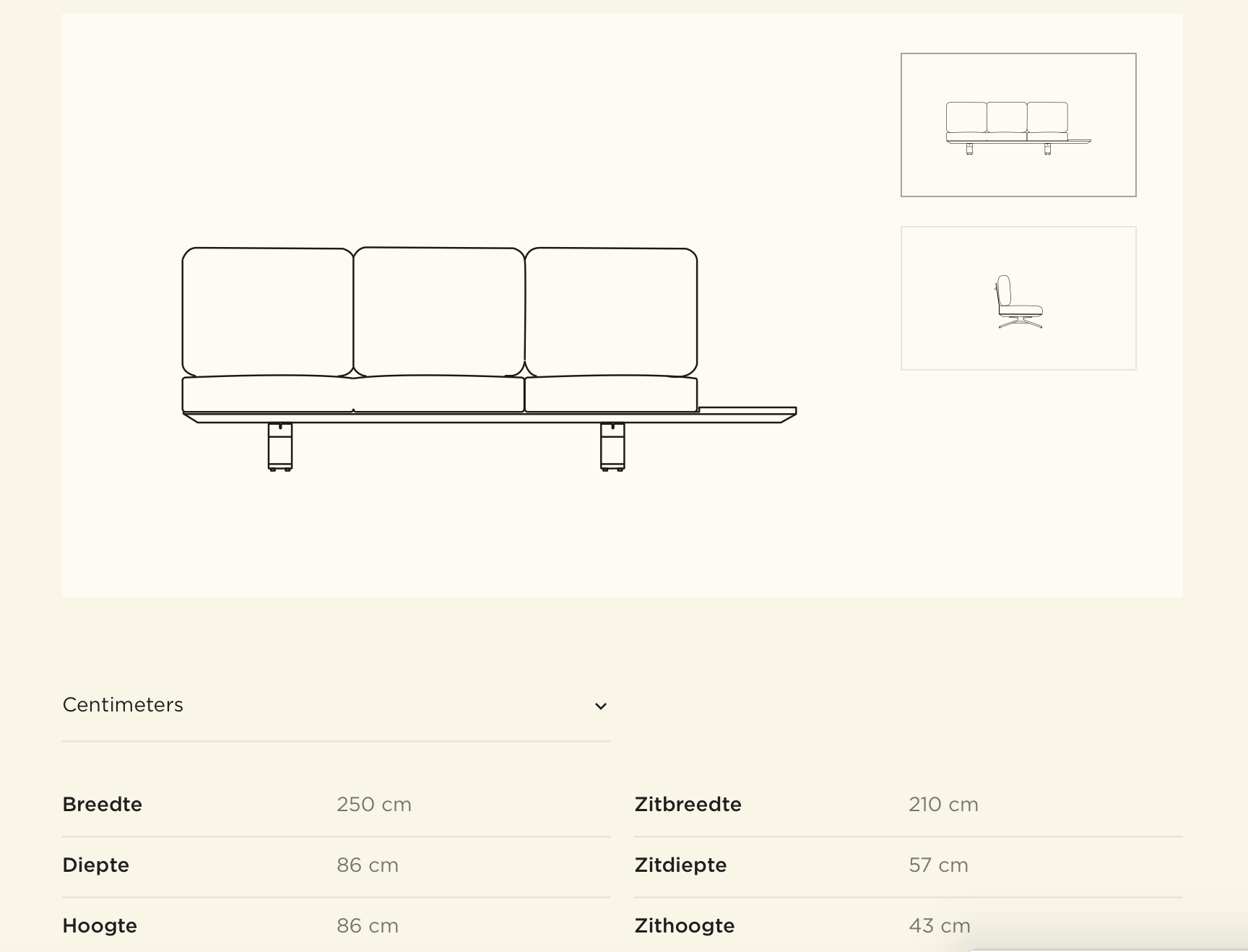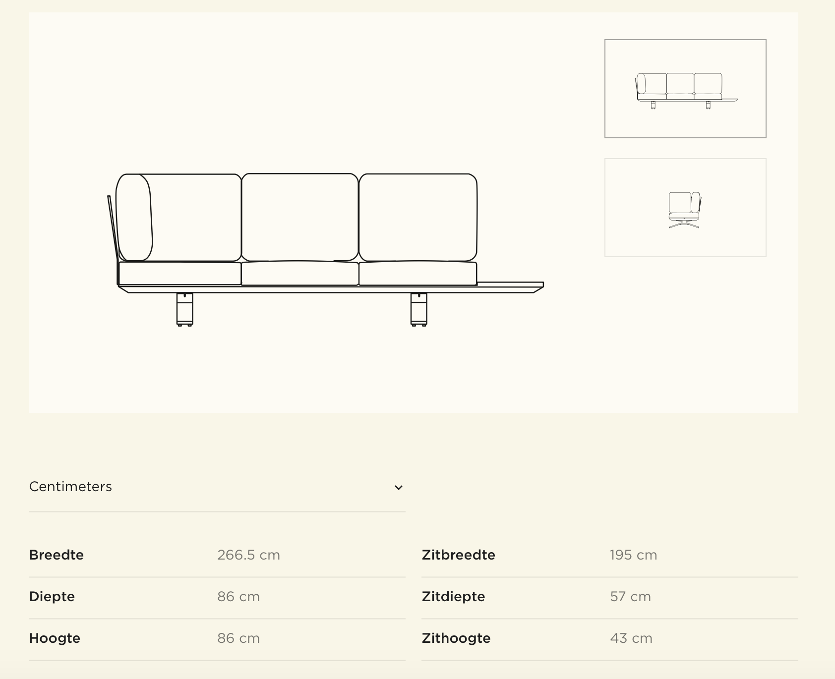 - 3-zitsbank met zijtafel: 225 x 75 cm