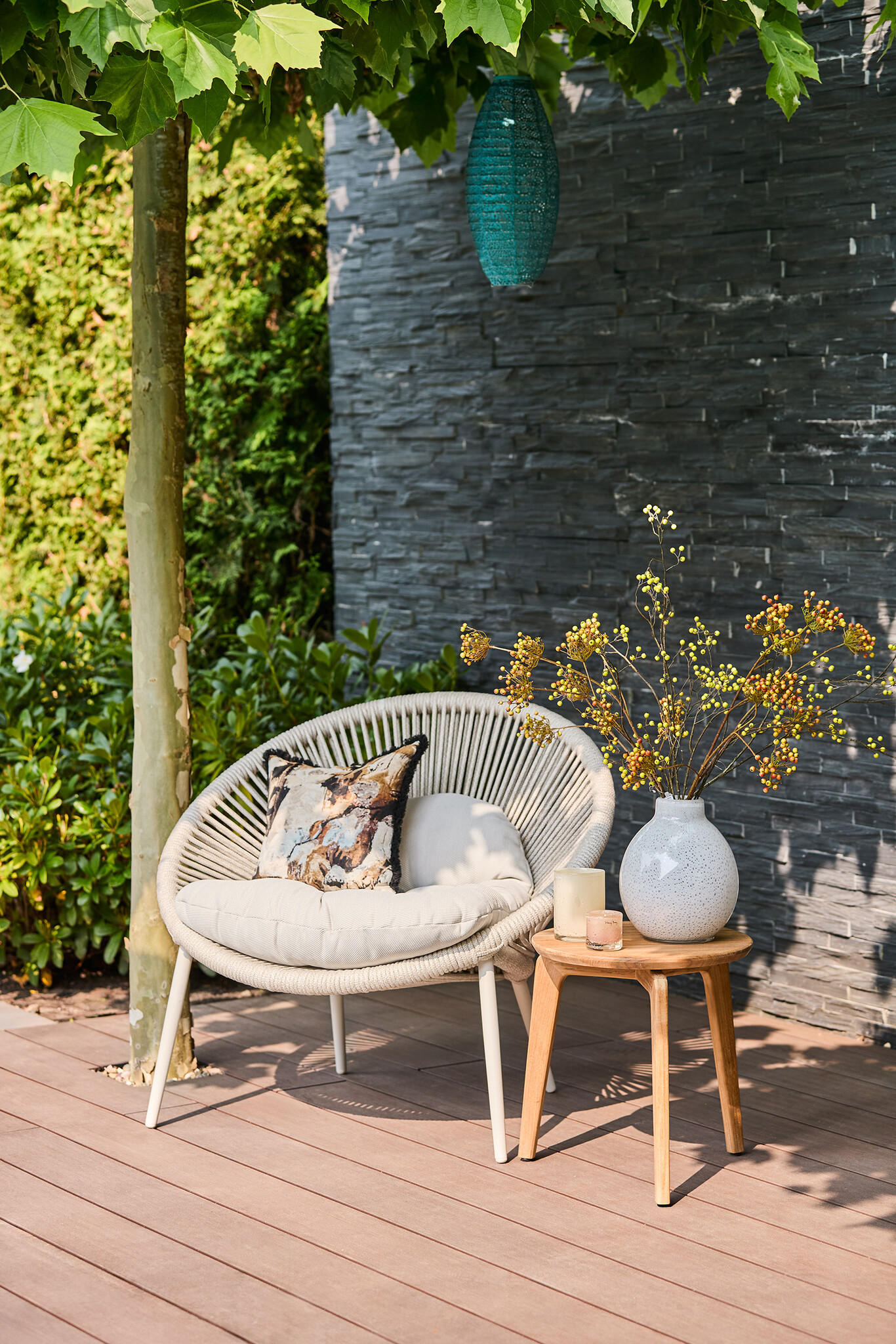 De comfortabele kussens zijn niet zomaar kussens: ze zijn ontworpen met een premium buitenstof die weerbestendig, waterbestendig, UV-bestendig en schimmelbestendig is. Dit maakt de stoel ideaal voor elk seizoen, zodat je hem het hele jaar door buiten kunt laten staan, zonder je zorgen te maken over slijtage door weersomstandigheden.