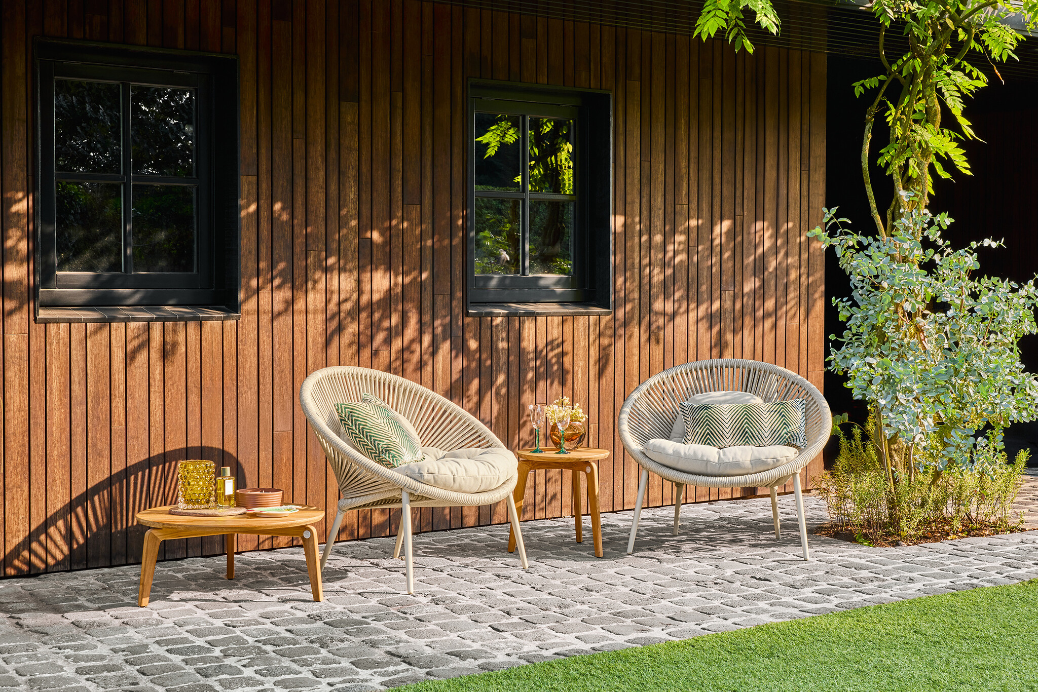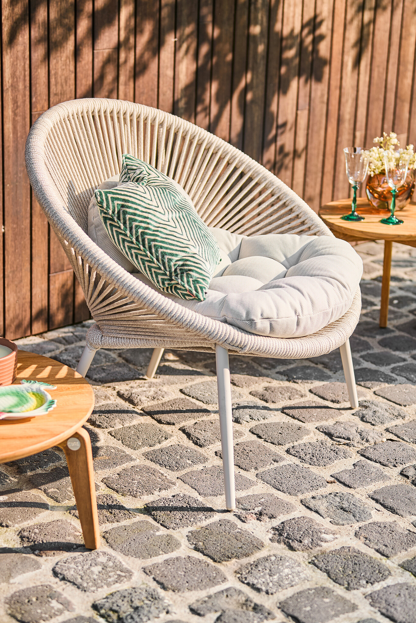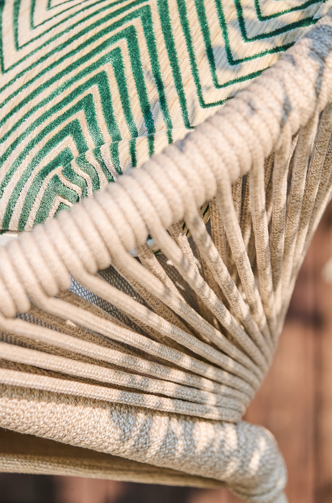 Dankzij het dure aluminium frame, omwikkeld met premium rope, is de Prato loungestoel niet alleen stijlvol, maar ook ongelooflijk robuust. Het hoogwaardige touw is weer-, slijt- en kleurvast, en heeft een uitzonderlijke lange levensduur. De speelse, visueel aantrekkelijke weaving zorgt voor een elegante, luxe uitstraling die je terras transformeert in een oase van comfort en stijl.