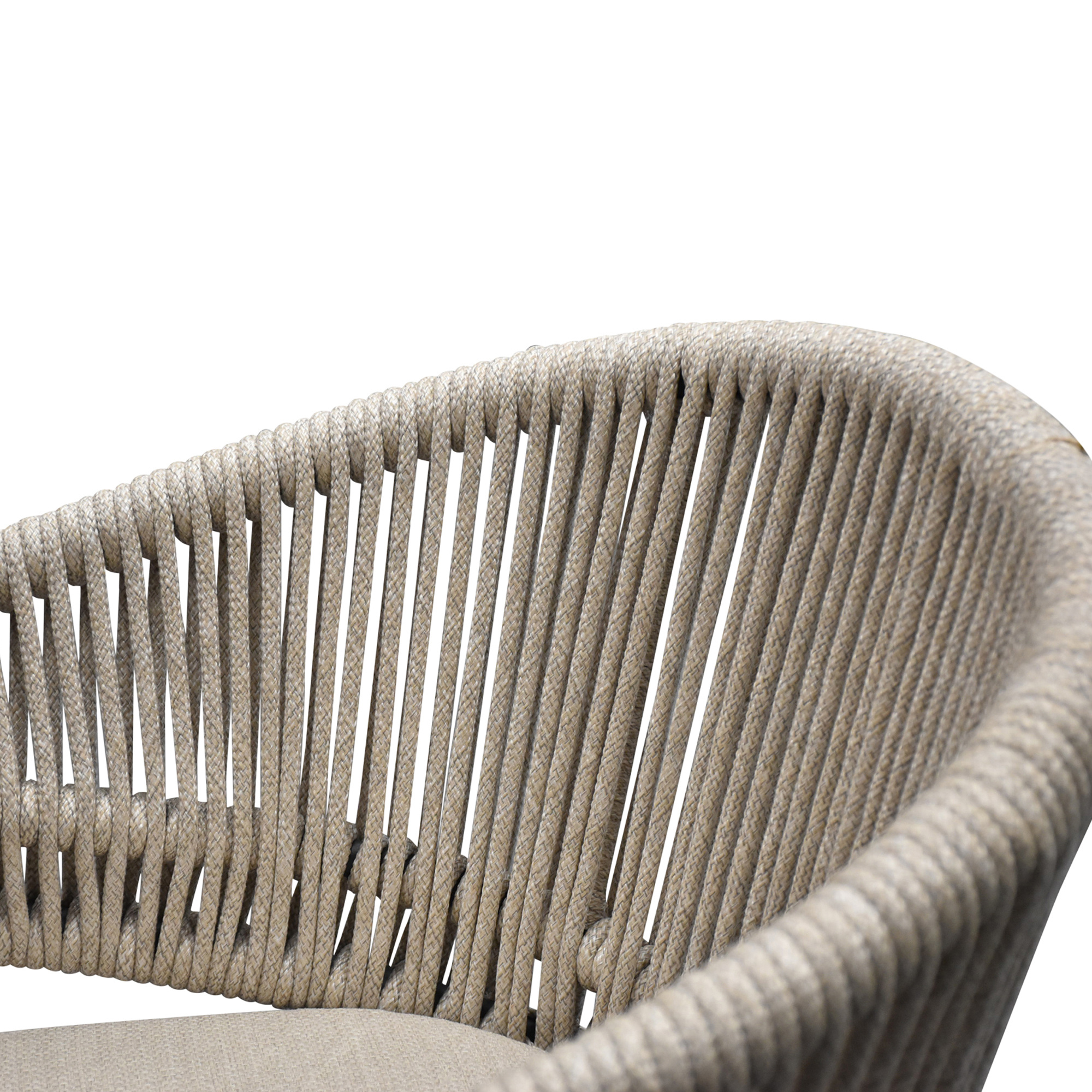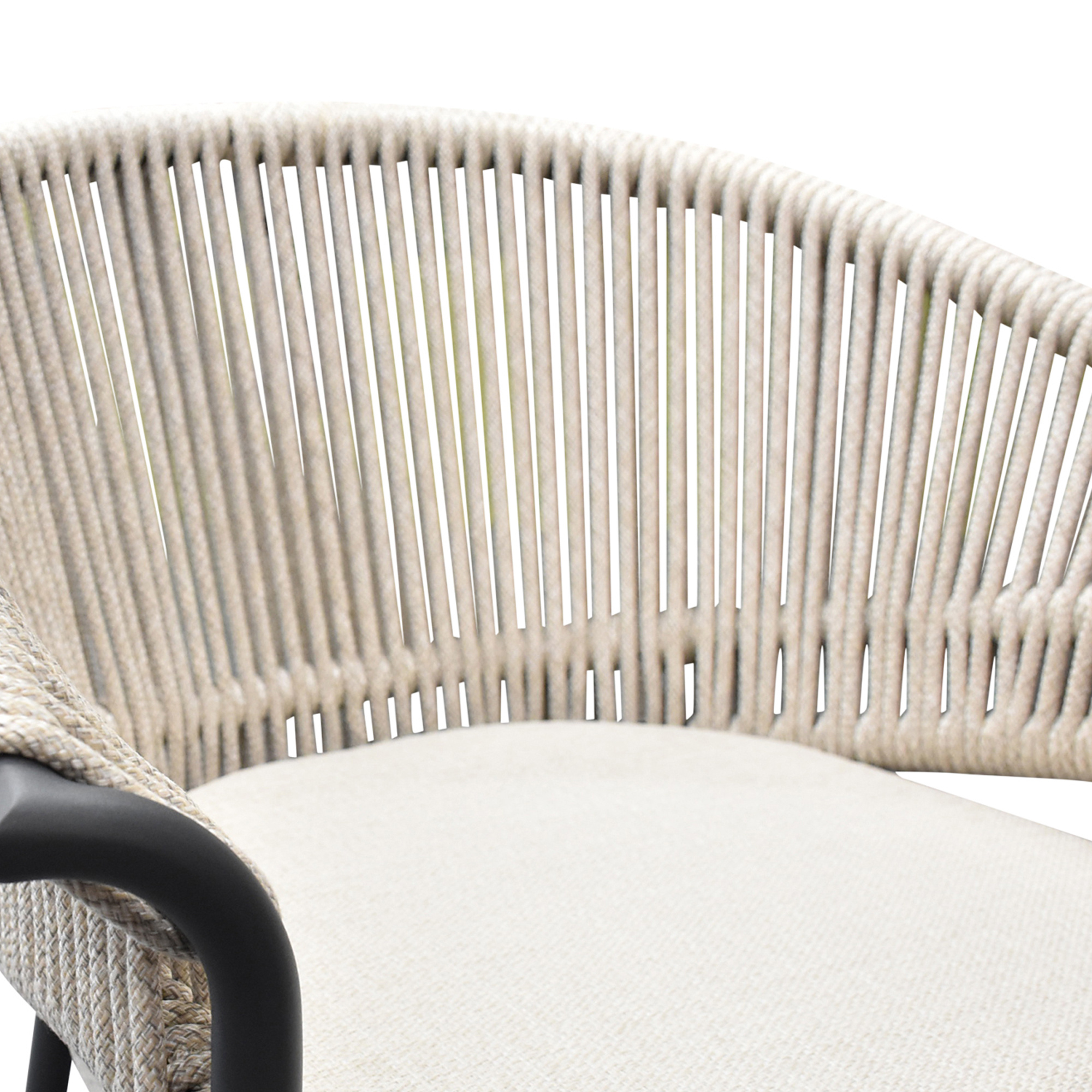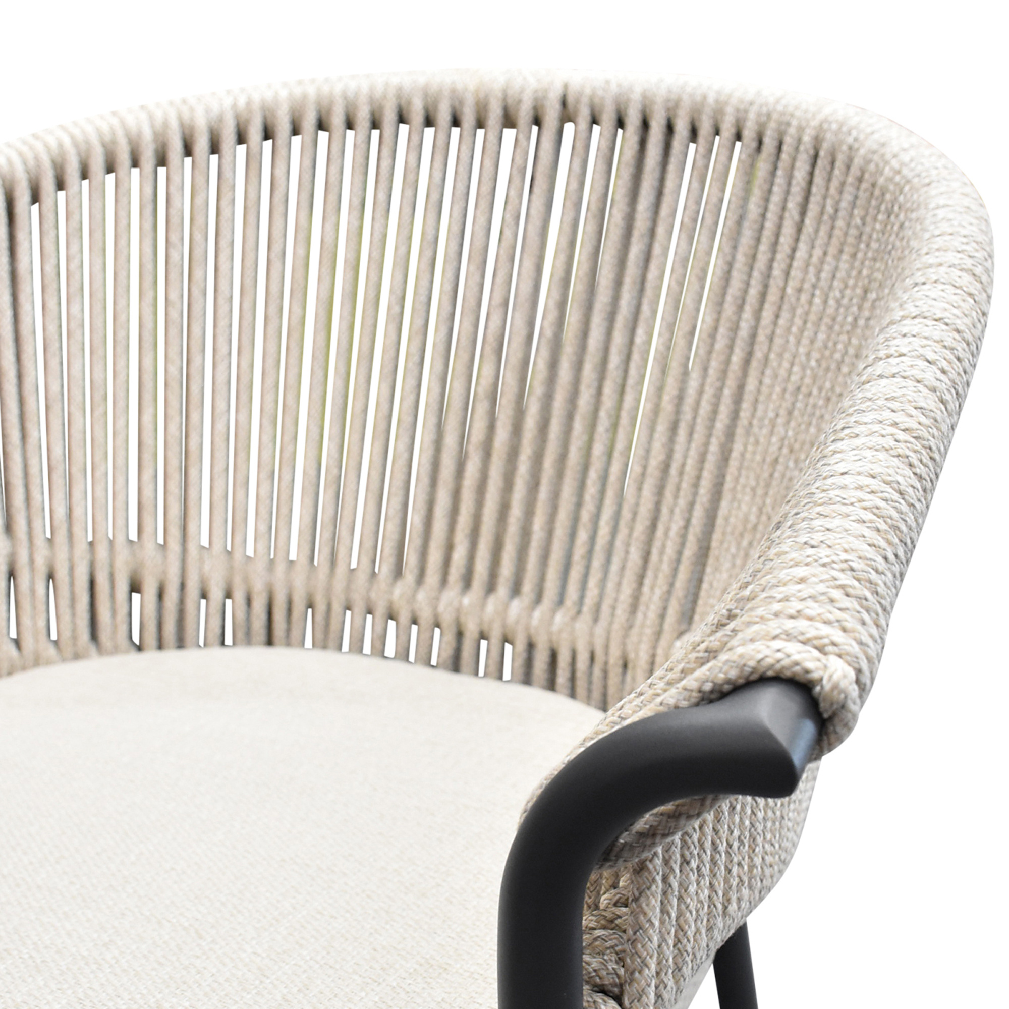 Wat Santorini echt bijzonder maakt, is de verfijnde afwerking. De charmante vormen en het stijlvolle touwwerk in modieuze weaving geven de stoel een uniek karakter. De comfortabele kussens zijn weerbestendig, duurzaam en onderhoudsvriendelijk – precies wat je van SUNS mag verwachten.