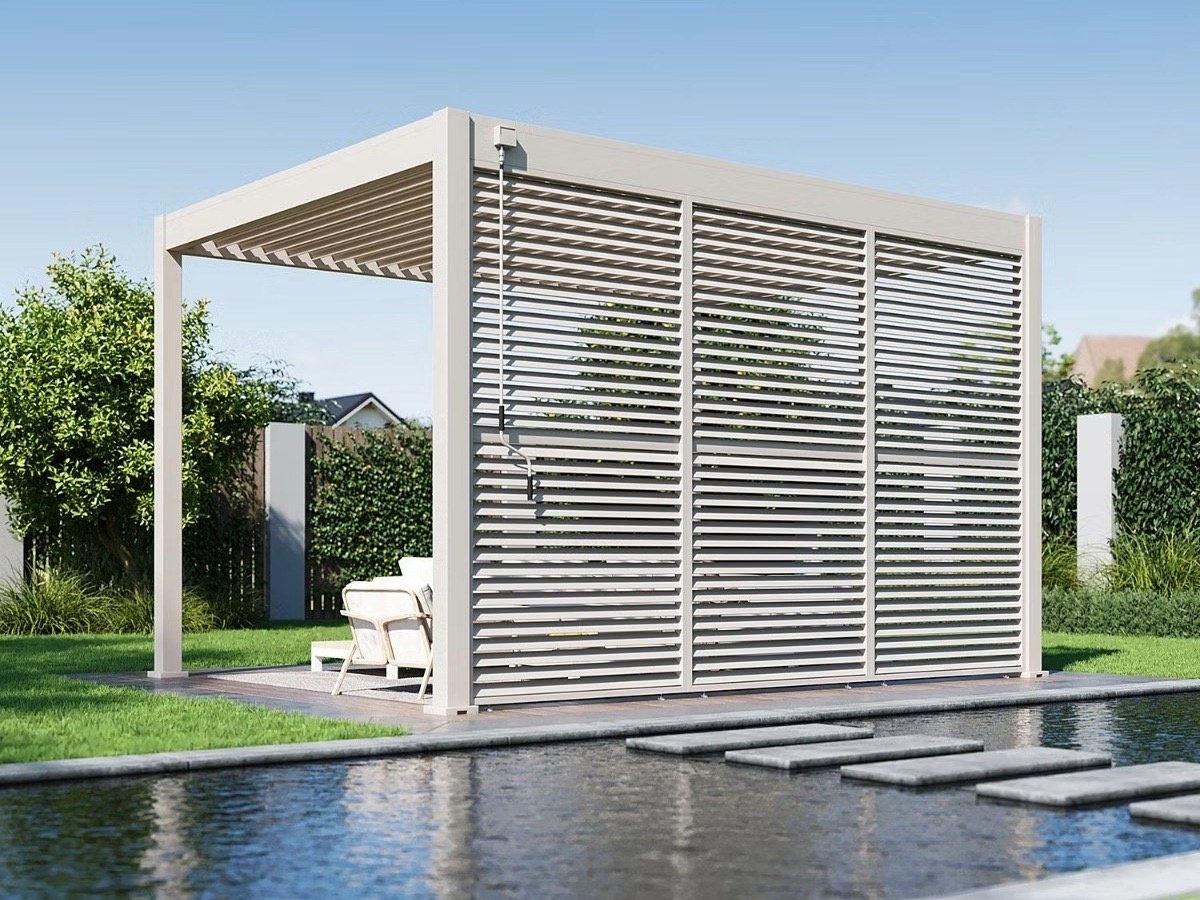 Geef jouw Venus overkapping een stijlvolle en functionele upgrade met het kantelbare shutterpaneel. Dit moderne paneel combineert een luxe uitstraling met optimaal gebruiksgemak, zodat je altijd kunt genieten van comfort, privacy en beschutting in je tuin.