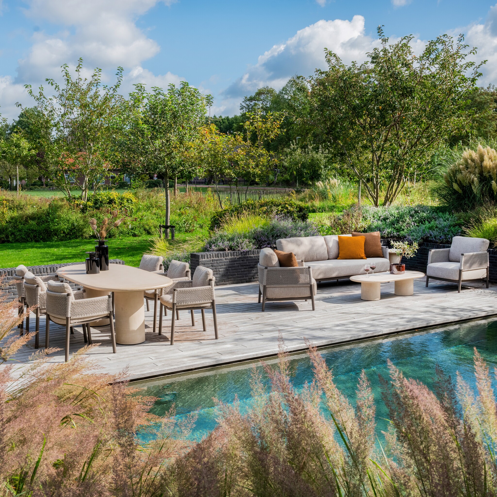 Met zijn neutrale kleurenpalet laat de Savanne 3-zitsbank zich eenvoudig combineren met andere tuinmeubelen en past hij moeiteloos in elke buitenruimte. Een stijlvolle keuze voor wie houdt van comfort, kwaliteit en een moderne uitstraling.